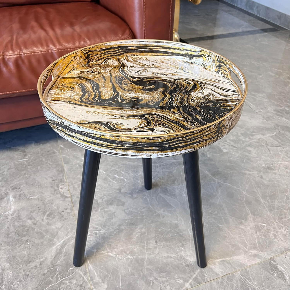 Simmer Stone Runder Beistelltisch für den Innenbereich mit abnehmbaren 3 Beinen aus Holz, vielseitig