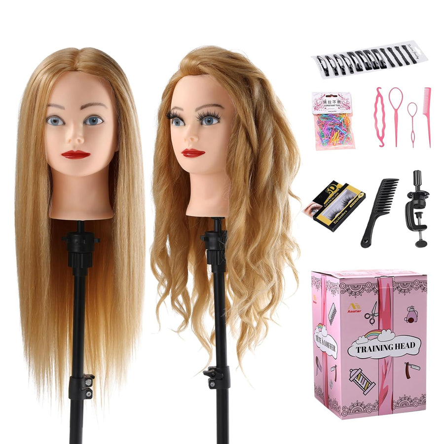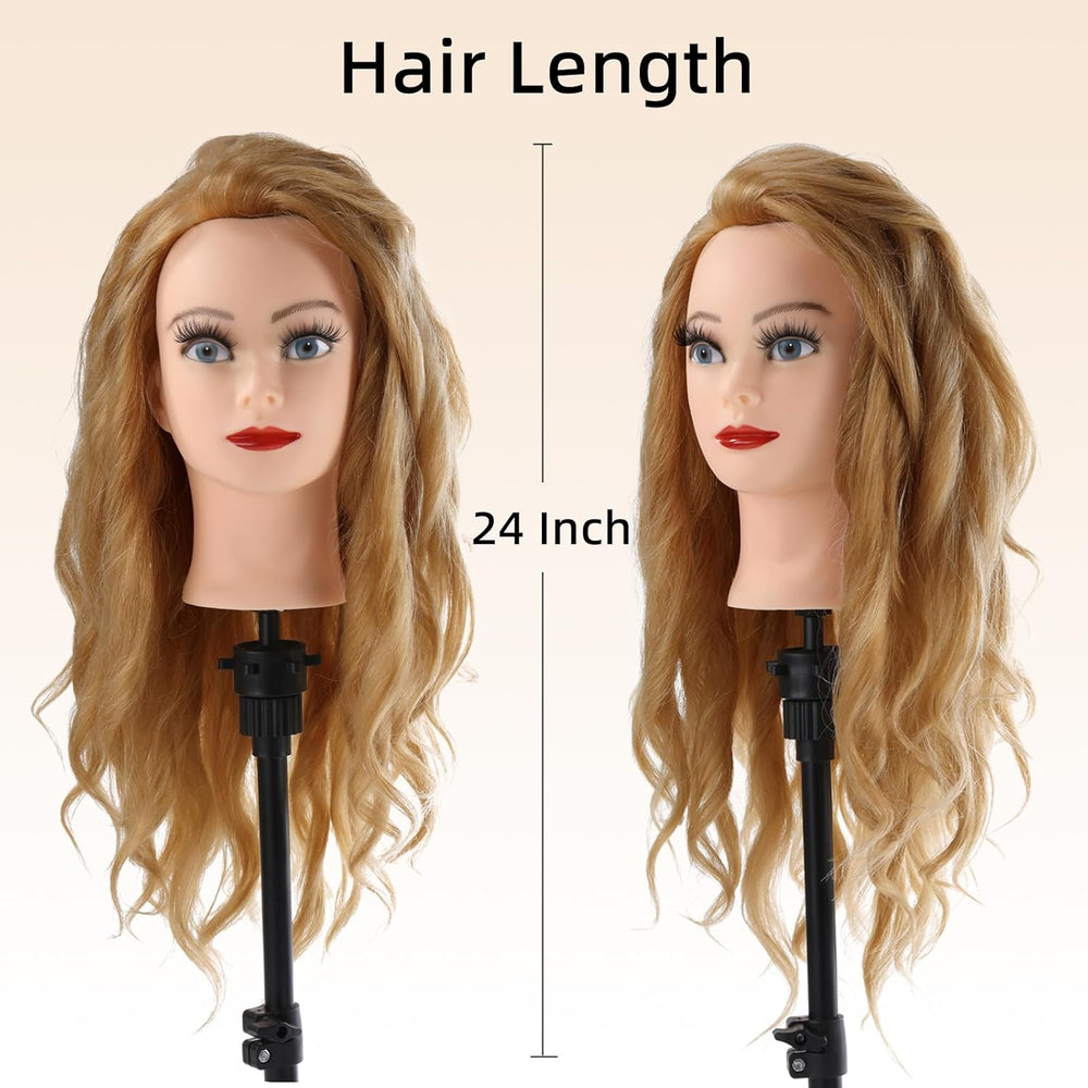 Frisierkopf 70% Echthaar Übungskopf 24 Zoll Frisieren Trainingsköpfe für Friseure Ausbildung Kopf Mi