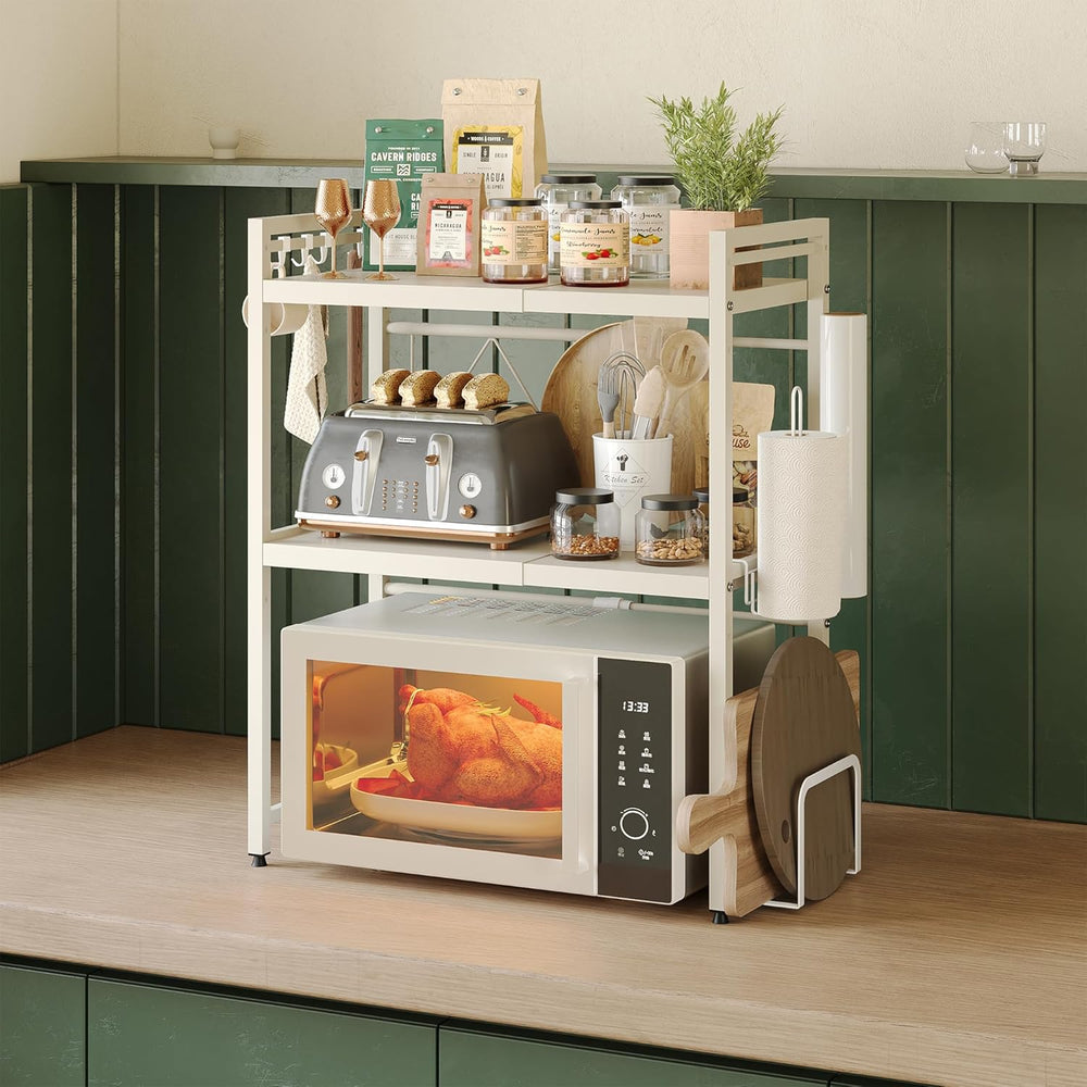 NETEL Mikrowellen Ständer 3 Stufiges Mikrowellen Halter Organizer mit Haken, Rollen Schneidebrett Ha