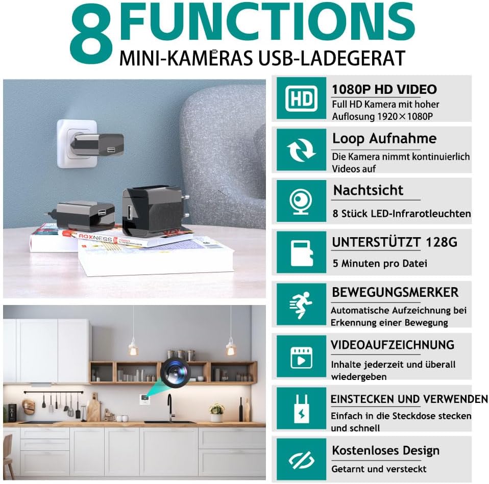 Überwachungskamera, KAMREA HD1080P Versteckte Kamera Mini Kamera Videorecorder Nanny Cam mit Bewegun
