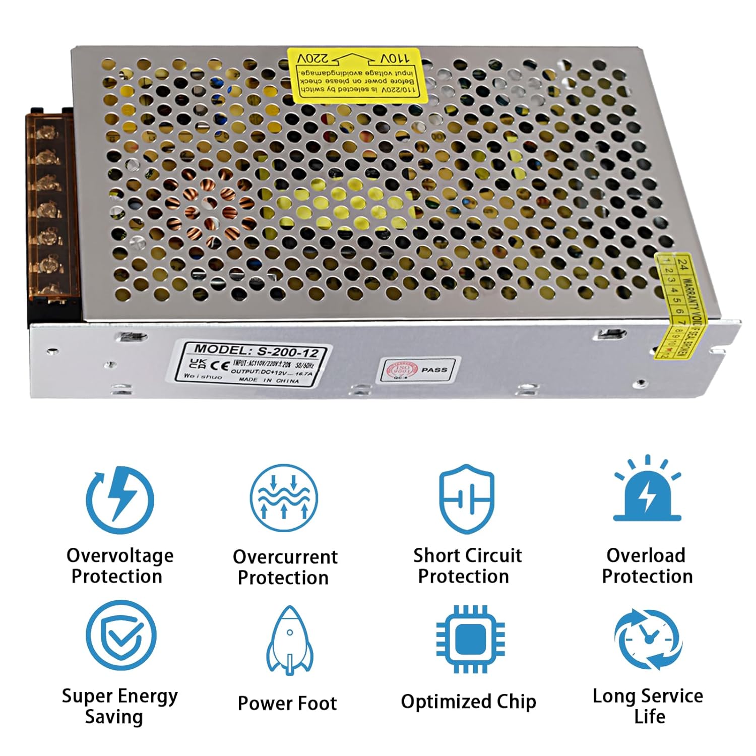 - Schaltnetzteil, wandeln Sie AC 110 V / 220 V in DC 12V 16.7A 200W.