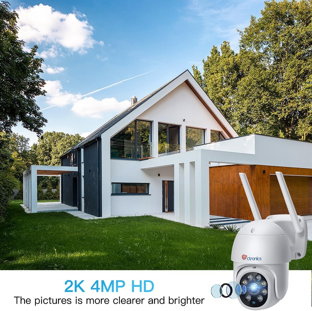 - 【2K 4MP HD-Auflösung & 30m Nachtsicht in Farbe】 Diese 2K PTZ überwachungskamera aussen (Schwenken, Neigen, Digitaler Zoom) ist ausgestattet mit 2560×1440P-der Echte 2K HD-Videoauflösung und 4MP Bildqualität und zeigt das Bild klarer als eine 1080P kamera; Sie können alles deutlich sehen. Und dank der eingebauten 4 weissen Leuchten und 4 Infrarot-Leuchten bietet diese Aussenkamera Ihnen Nachtsicht Bilder in voller Farbe für bis zu 30 Meter.