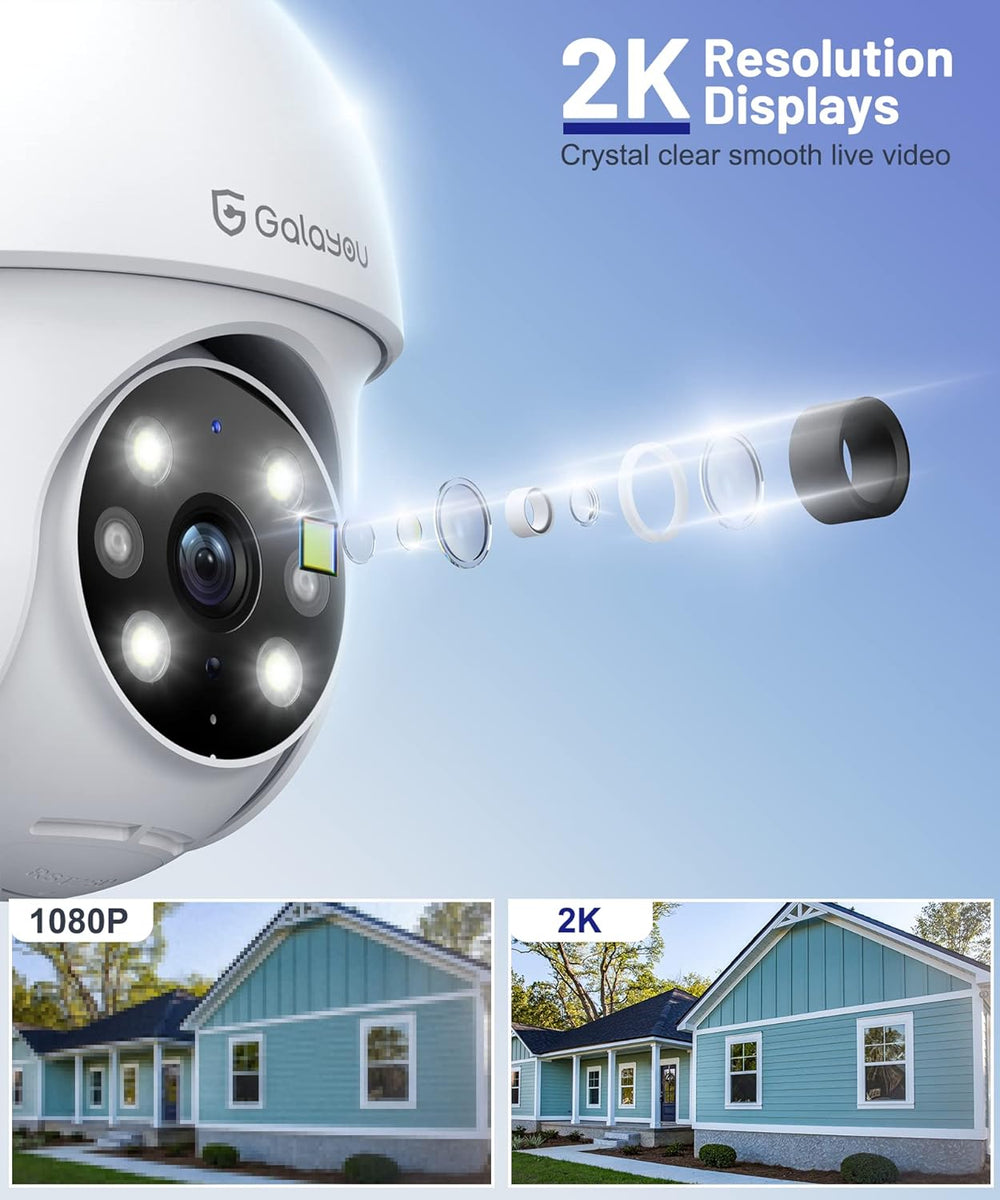 - 【 2k HD-Auflösung & Schwenken/Neigen/Zoom】Diese Überwachungskamera Aussen ist mit einer HD-Videoauflösung ausgestattet ,um Ihnen Tag und Nacht klarer Bilder und Vidoes als 1080P zu liefern. Mit dem 335° Horizontal und 90° Vertikal können Sie