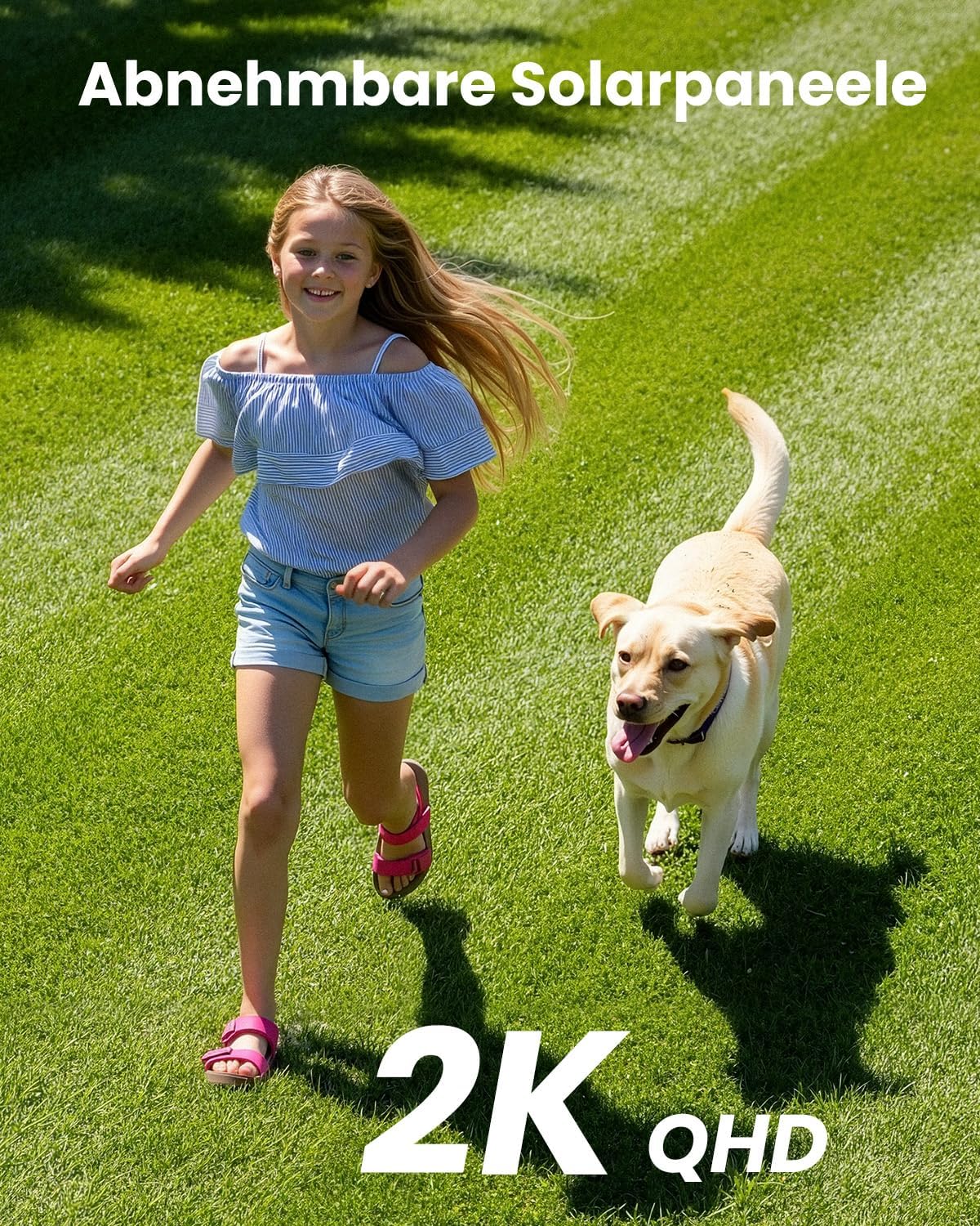- 【2K 3MP & 100% kabellos】Die Solar-Aussenkamera liefert kristallklare 2K-QHD-Bilder mit 5-fachem Digitalzoom. 100% kabellose Installation ohne Netzwerk- oder Stromkabel – einfach Solarpanel anschliessen für ganzjährigen Betrieb (365 Tage).