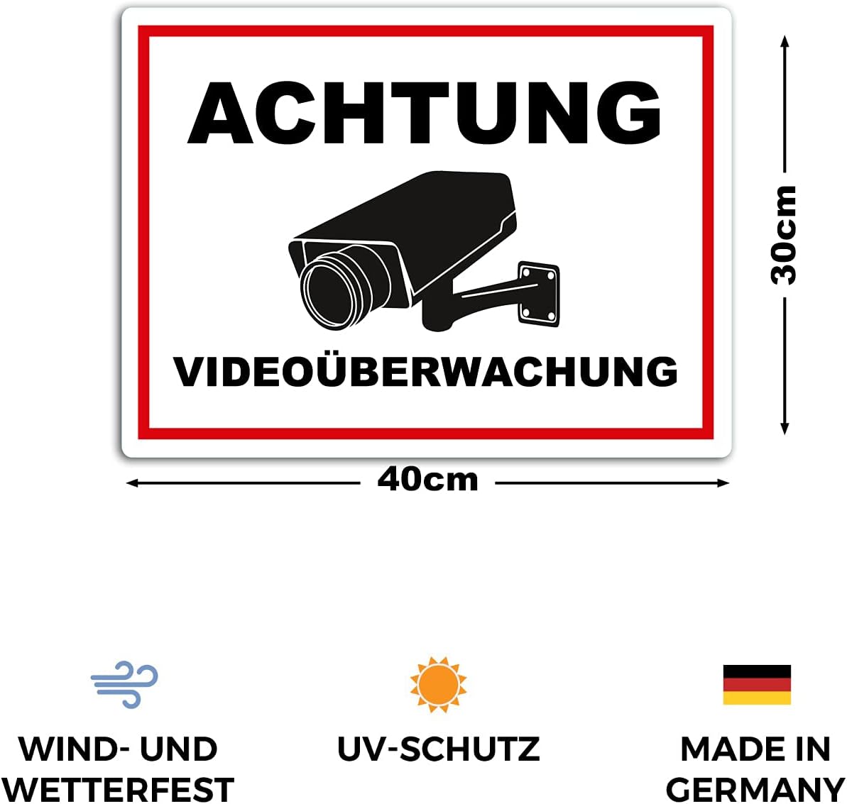 - 2x Achtung Videoüberwachung Schild 40 x 30 cm aus stabiler PVC Hartschaumplatte 5 mm