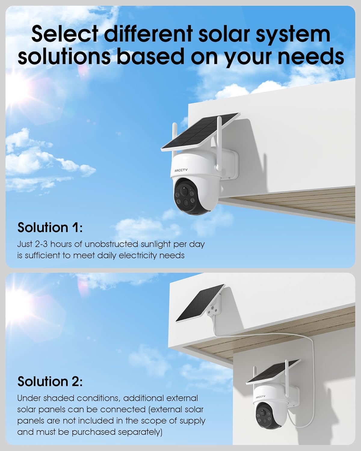 - Verabschieden Sie sich von lästigen Kabeln: Diese Aussenüberwachungskamera wird über ein Solarpanel mit integriertem Backup-Akku mit Strom versorgt und ist somit völlig unabhängig von Stromkabeln, was eine flexible und unkomplizierte Installation