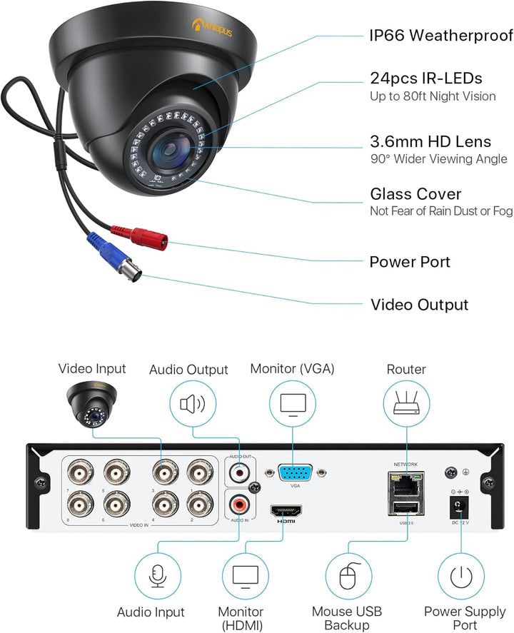 - Wetterfeste Outdoor-Überwachungskamera: Diese Überwachungskamera kann problemlos im Freien installiert werden. Das IP66 Gehäuse kann jahrelang halten, auch wenn es direkt intensiven Wetterbedingungen ausgesetzt sind.
