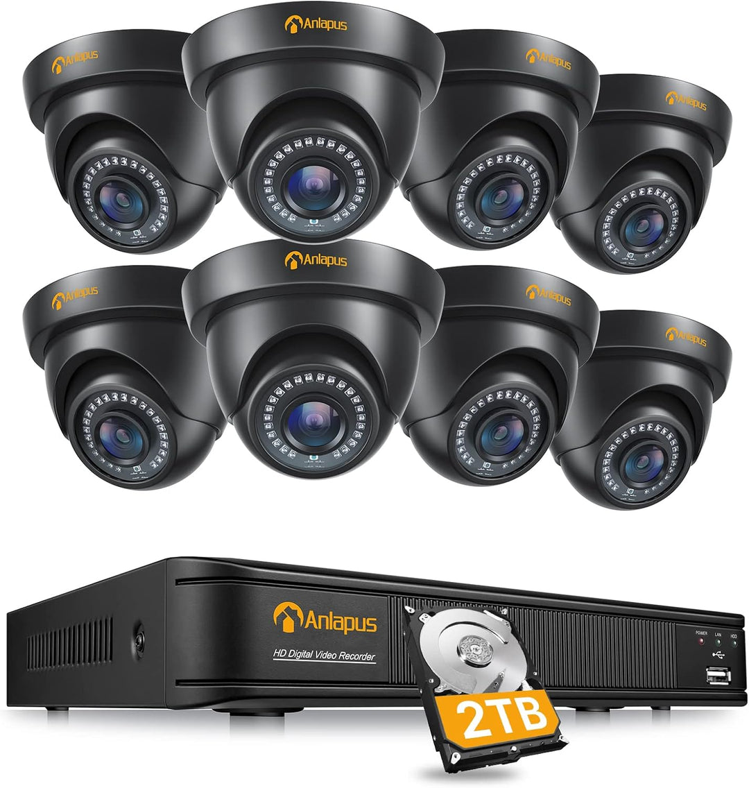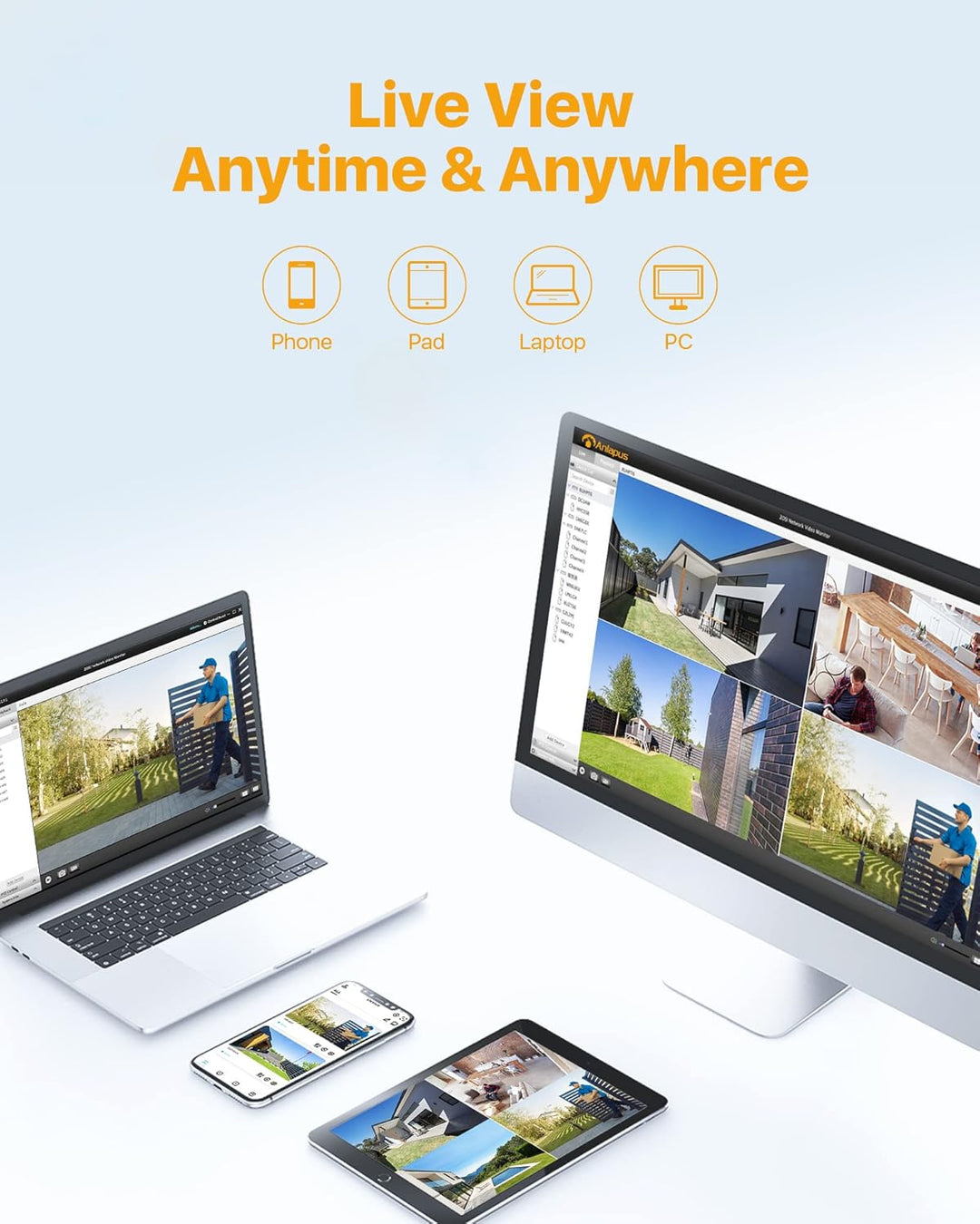 - 2TB Festplatte und H.265+ Videokomprimierug: Dank der H.265+ Technologie werden die Videos effektiv komprimiert und benötigen wenigen Speicherplatz. Die 2TB HDD sichert die einwandfreie Aufnahmen und Wiedergabe von der 8 Kameras in 1080P Full HD. Die