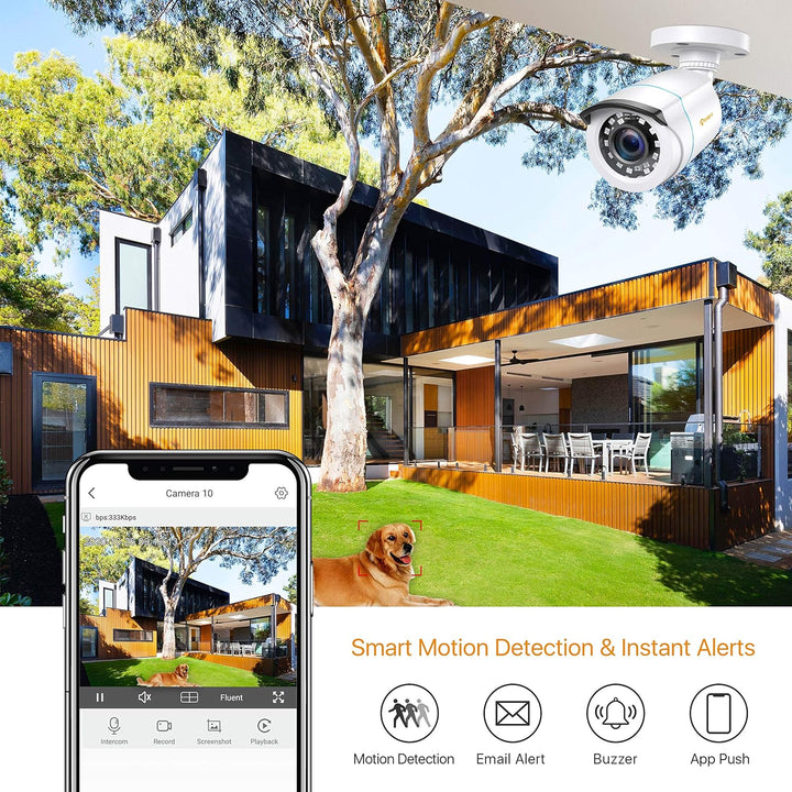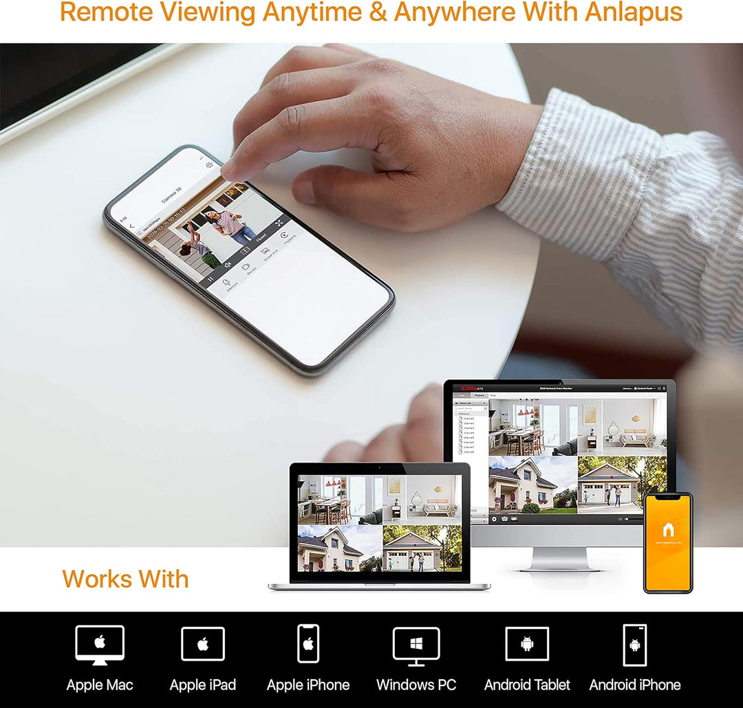 - 【Einfach Bedienbare Mobile App】Verbinden Sie Ihr Sicherheitssystem ganz einfach mit der App für Ihre Mobilgeräte. Betrachten Sie Ihre Eigentüme sicher von jedem Ort der Welt aus, verfolgen Sie alle Bewegungsaktivitäten mit leicht lesbaren