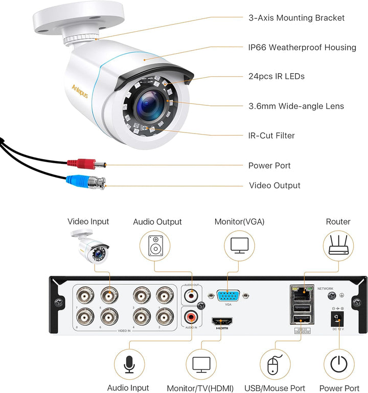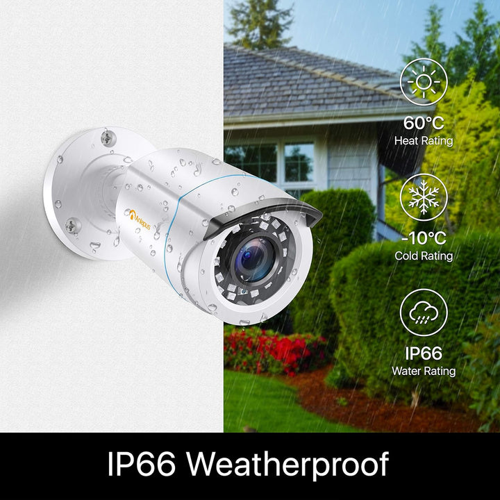 - 【Wetterfeste Outdoor-Überwachungskamera】 Diese Überwachungskamera kann problemlos im Freien installiert werden. Das IP66 Gehäuse kann jahrelang halten, auch wenn es direkt intensiven Wetterbedingungen ausgesetzt sind. Die verdrehbare Halterung