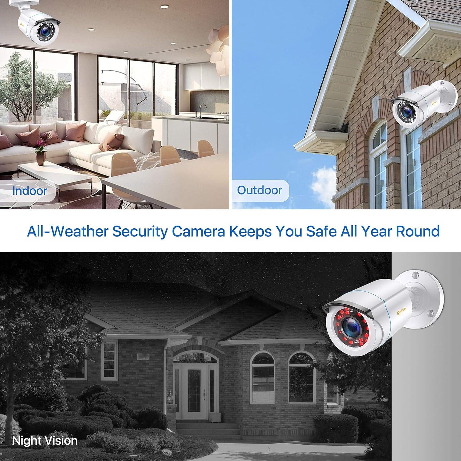 - 【1080P Full HD & Nachtsicht】 Der CMOS Sensor produziert scharfe Videos mit einer Auflösung von 2.0 MP und erfasst die Details, die Sie brauchen. Die 24 leistungsstarken LED-Lampen geben Infrarotbeleuchtung im Sichtfeld der Kamera ab und ermöglichen