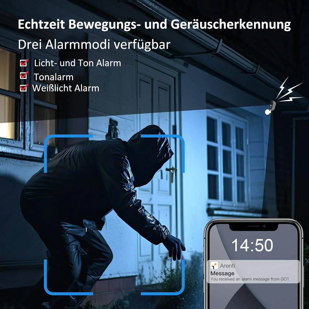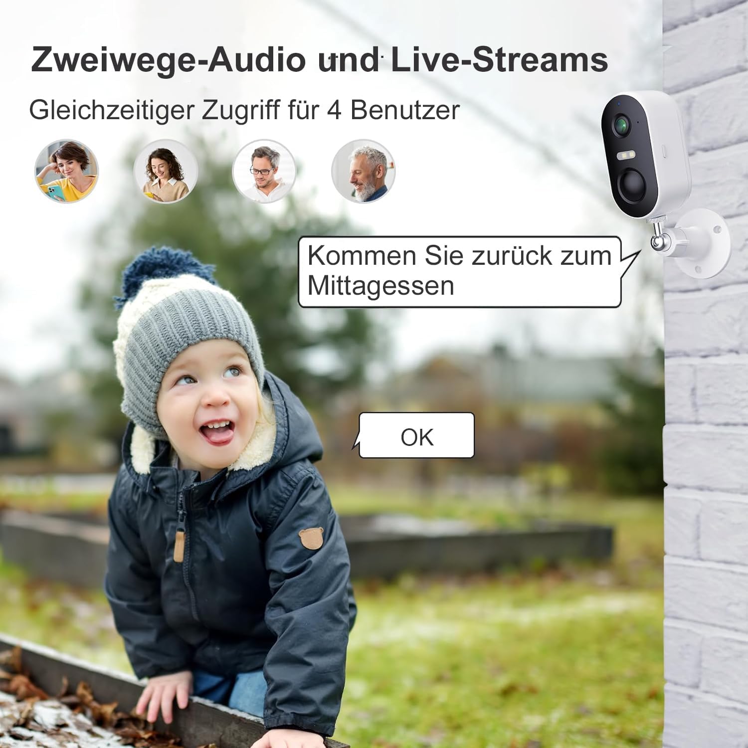 - 【Bequemer Steuerung durch Arenti App & Alexa】: Mit der kostenlosen Arenti-App können Sie die Live-Ansicht der Outdoor WLAN IP-Kamera mit Akku jederzeit sehen, hören und sprechen Sie auch mit dem Besucher in Echtzeit. Ausserdem steuern Sie diese