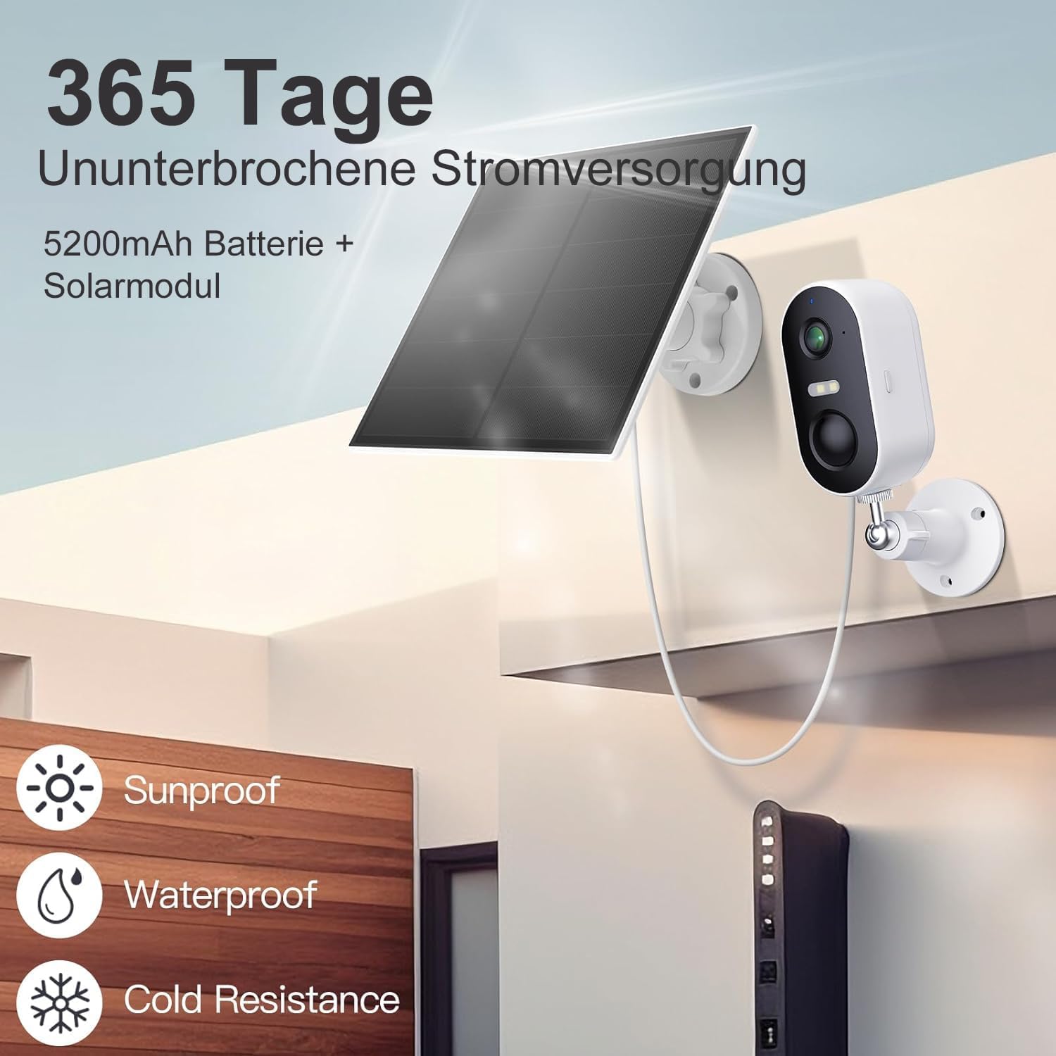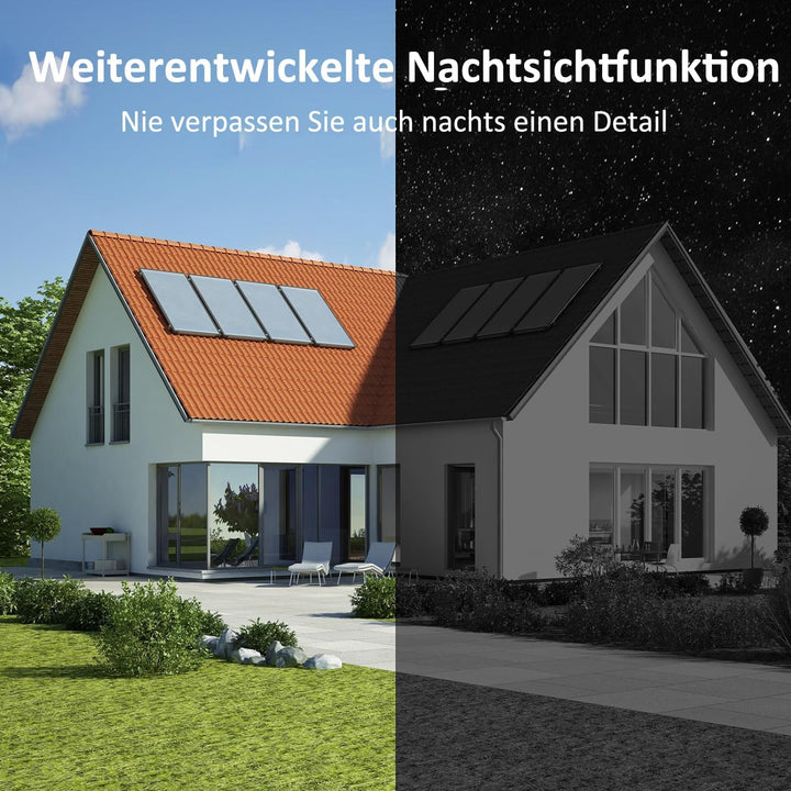 - 【Klare 1080p Bildqualität & 145° Weitwinkel】: Die Akku-Überwachungskamera garantiert eine gestochen scharfe Aufnahme bei Tag & Dunkelheit - mit der 1080p Auflösung und dem integrierten Infrarotsensor. Es bietet einen Weitwinkel von 165 Grad und
