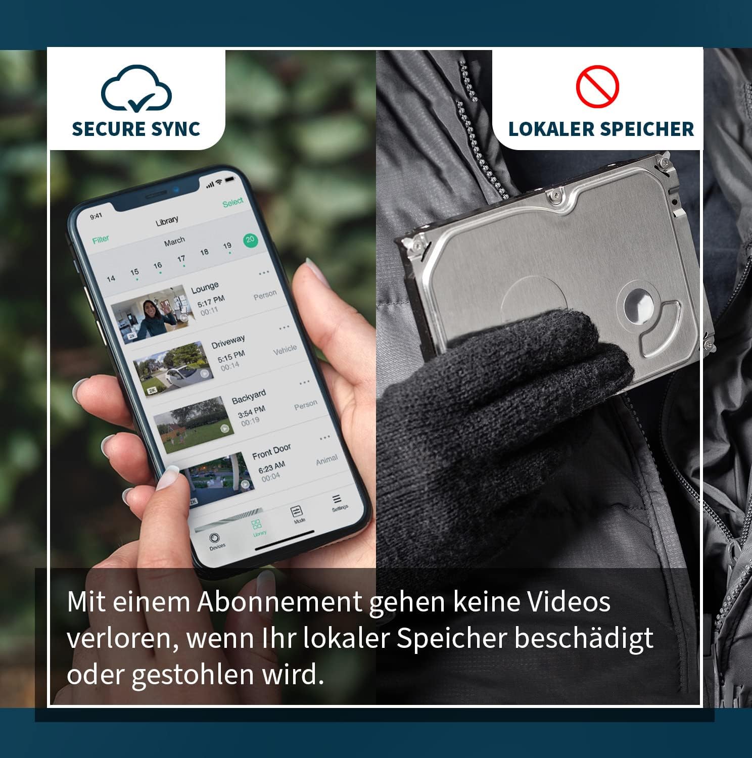 - ARLO SECURE SERVICEPLAN (separat erhältlich) sichert die Videos sicher in der Cloud. Erkennt mehr als jede andere Kamera; identifiziert und unterscheidet zwischen Personen, Autos, Haustieren und Paketen; ermöglicht Aktivitätszonen. Das Abonnement