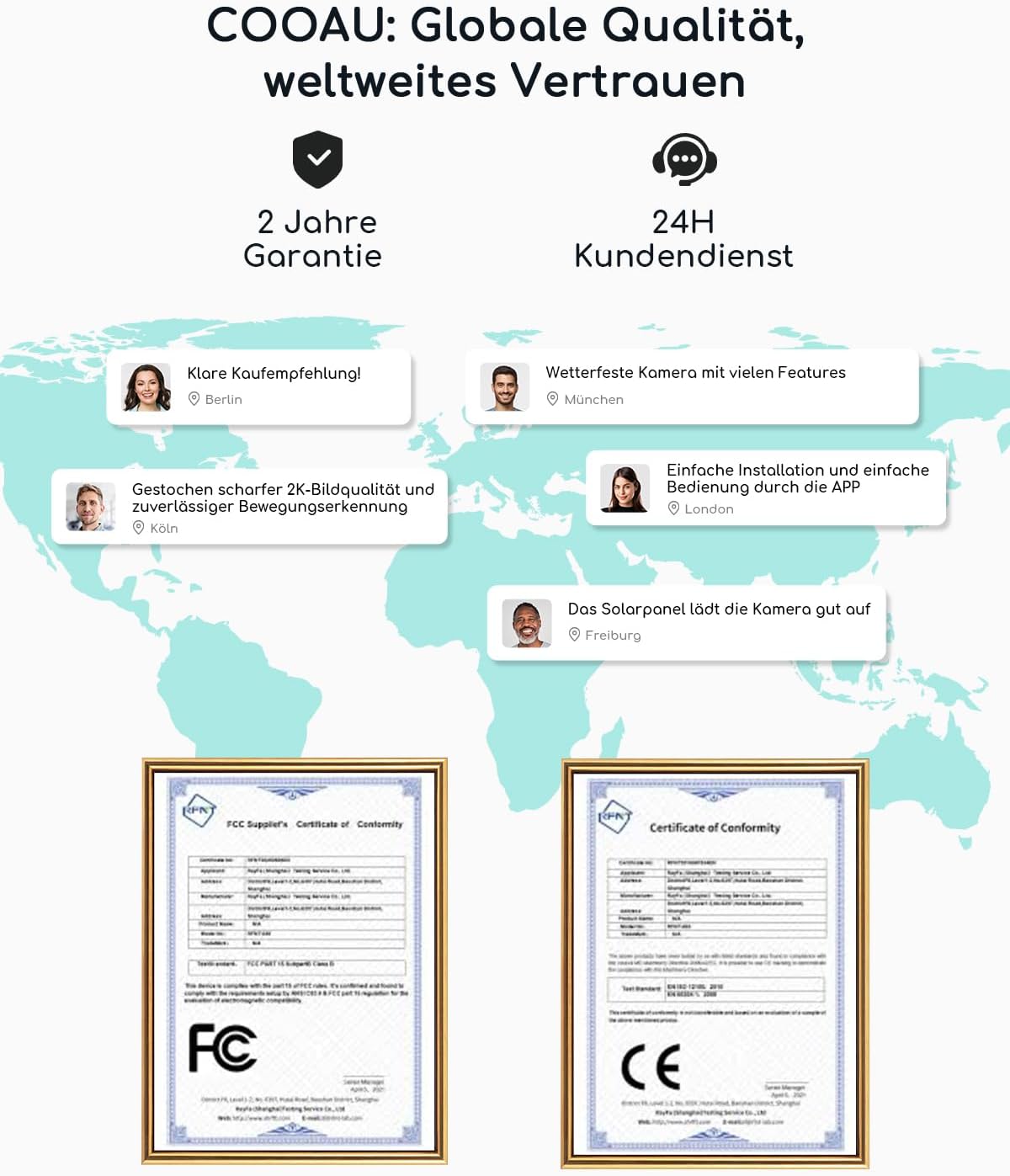 - 【BC-Solartechnologie ➧ Einfache Installation】Die COOAU Überwachungskamera aussen Solar nutzt fortschrittliche BC-Solartechnologie mit über 30% höherer Ladeeffizienz als bei anderen Produkten. Selbst bei bewölktem Wetter lädt sie zuverlässig