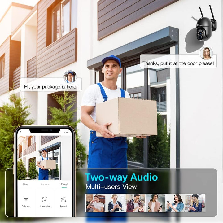 - 🎁【Intelligentes 355° Schwenken / 90° Neigen】 : Mit der wunderbaren Funktion zum Schwenken / Neigen (355° horizontal und 90° vertikal) kann diese PTZ wlan kamera outdoor grössere Blickwinkel erfassen und mehr Bereiche abdecken, keine toten Winkel mehr. Mit einer einzigen Sicherheitskamera können Sie jeden Winkel Ihres Hauses beobachten.