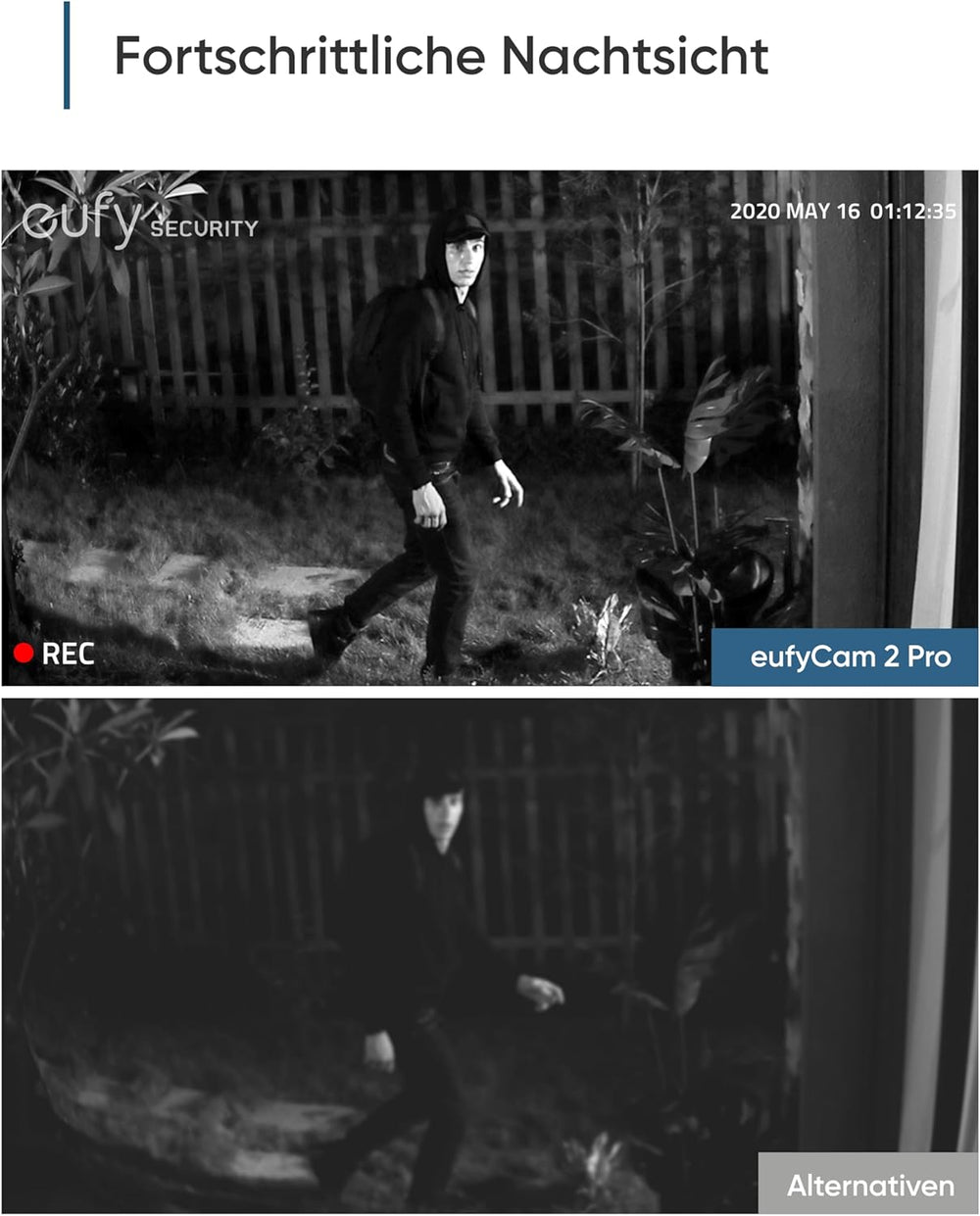 - PERSONENERKENNUNG: eufyCam 2C Pro Überwachungskamera aussen erkennt Vögel, Hunde und Blätter im Wind und reduziert effektiv falschen Alarm, damit Sie wirklich nur im richtigen Moment alarmiert werden.