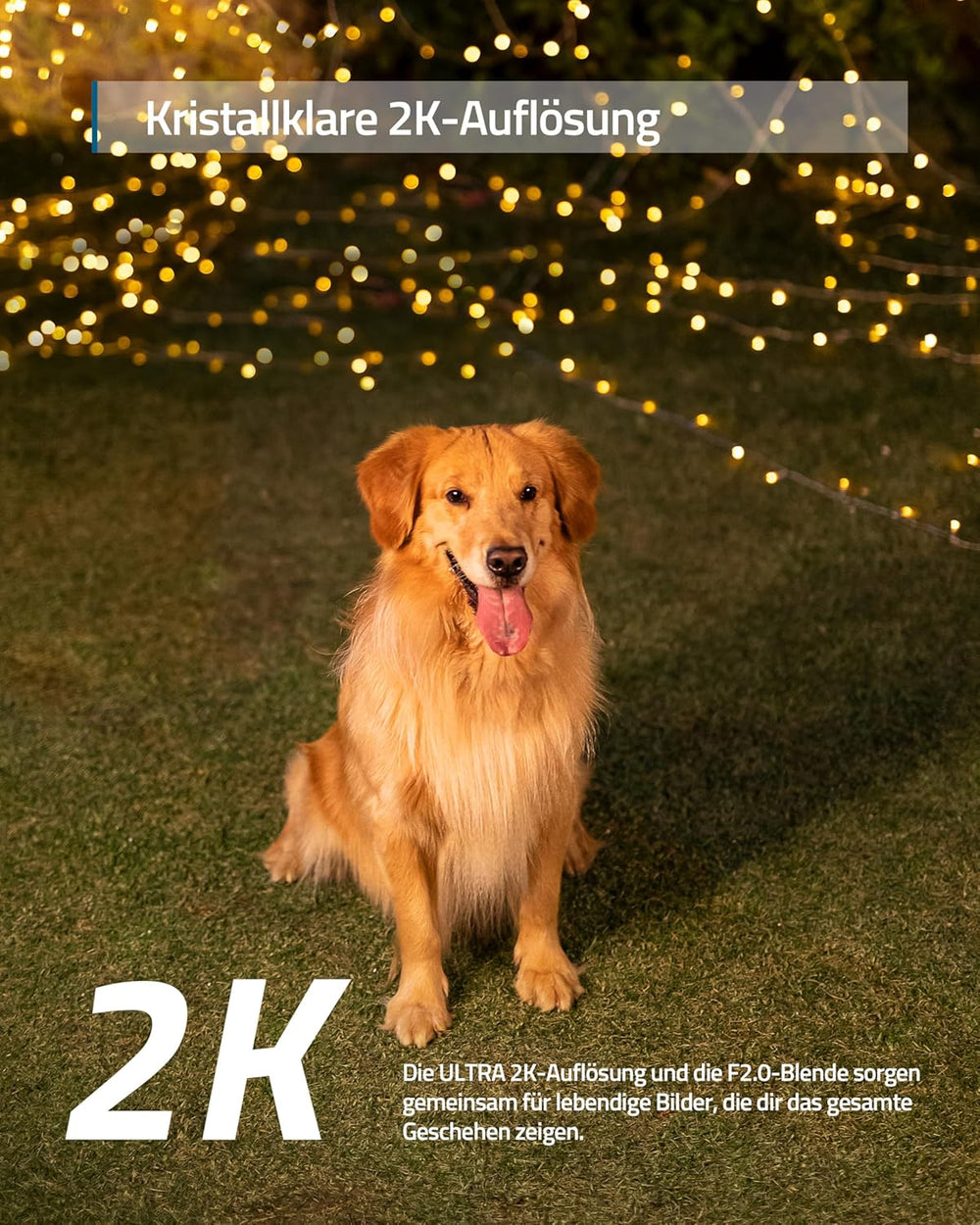 - SICHERHEIT RUND UM DIE UHR: Ausgestattet mit einer F2.0 Blende, die Aufnahmen des Aussenbereichs messerscharf und in lebendigen Farben speichert und wiedergibt. Jeder Moment der letzten 24 Stunden kann in kristallklarer 2K Auflösung abgespielt werden.