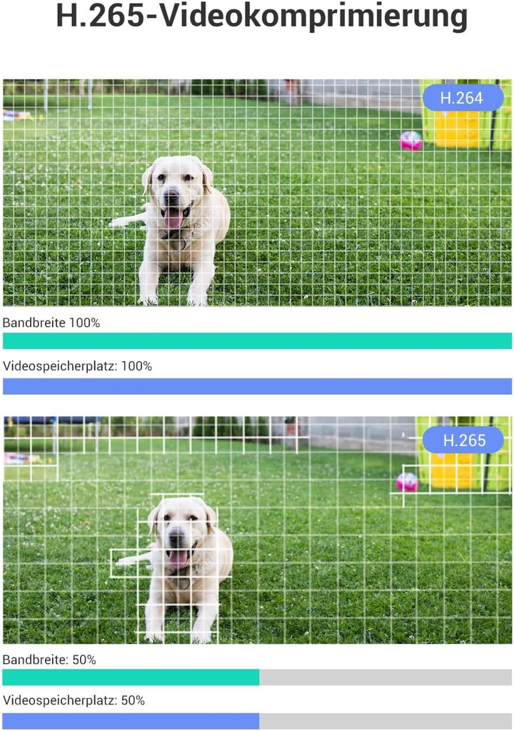 - Zwei-Wege-Audio & H.265: Das eingebaute Mikrofon und der Lautsprecher der WLAN Kamera ermöglichen es Ihnen, mit Ihren Lieben zu sprechen und unerwünschte Fremde abzuschrecken. Mit der fortschrittlichen H.265-Videokomprimierungstechnologie erreicht die Wifi Kamera eine bessere Videoqualität mit nur der halben Bandbreite und dem halben Speicherplatz.
