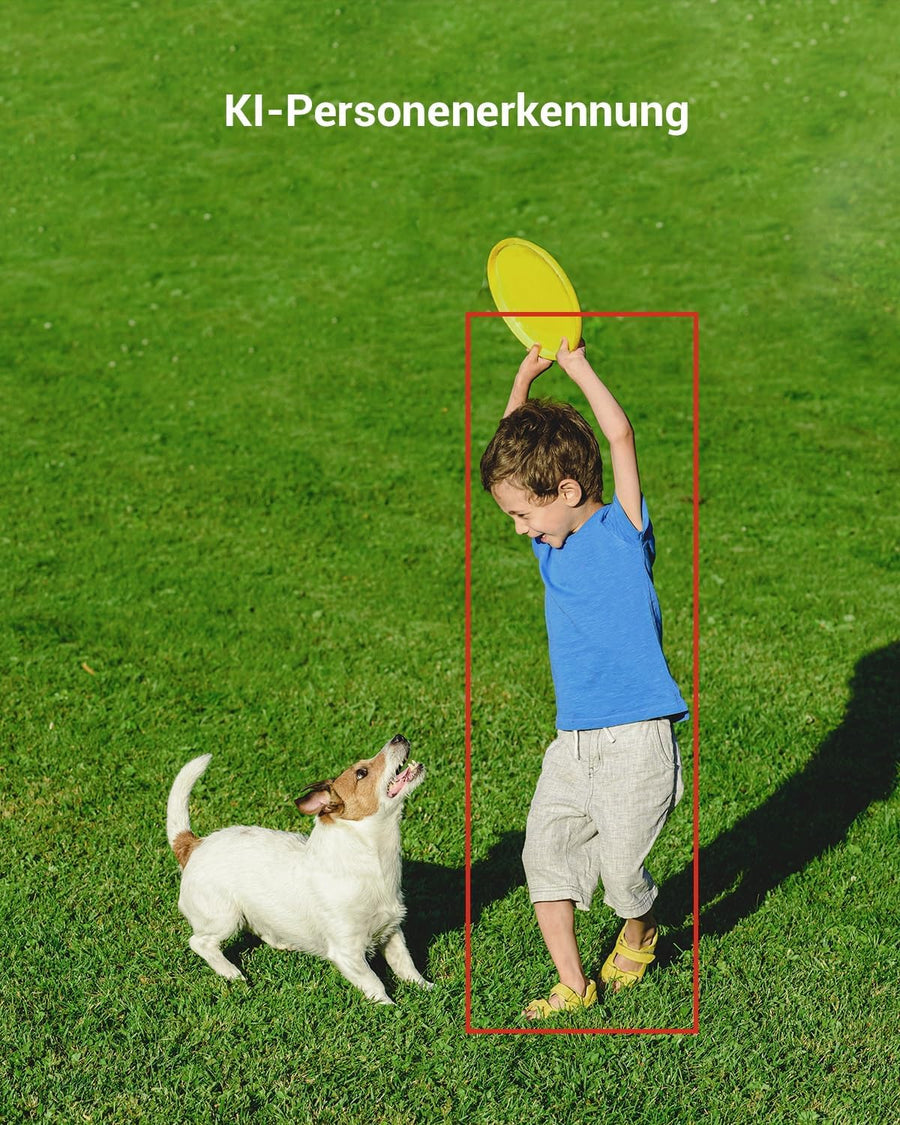 - KI-Personenerkennung: Diese Überwachungskamera aussen ist mit einem integrierten KI-Algorithmus ausgestattet und kann Personen von Haustieren oder anderen Objekten unterscheiden, damit werden Fehlalarme erheblich reduziert.