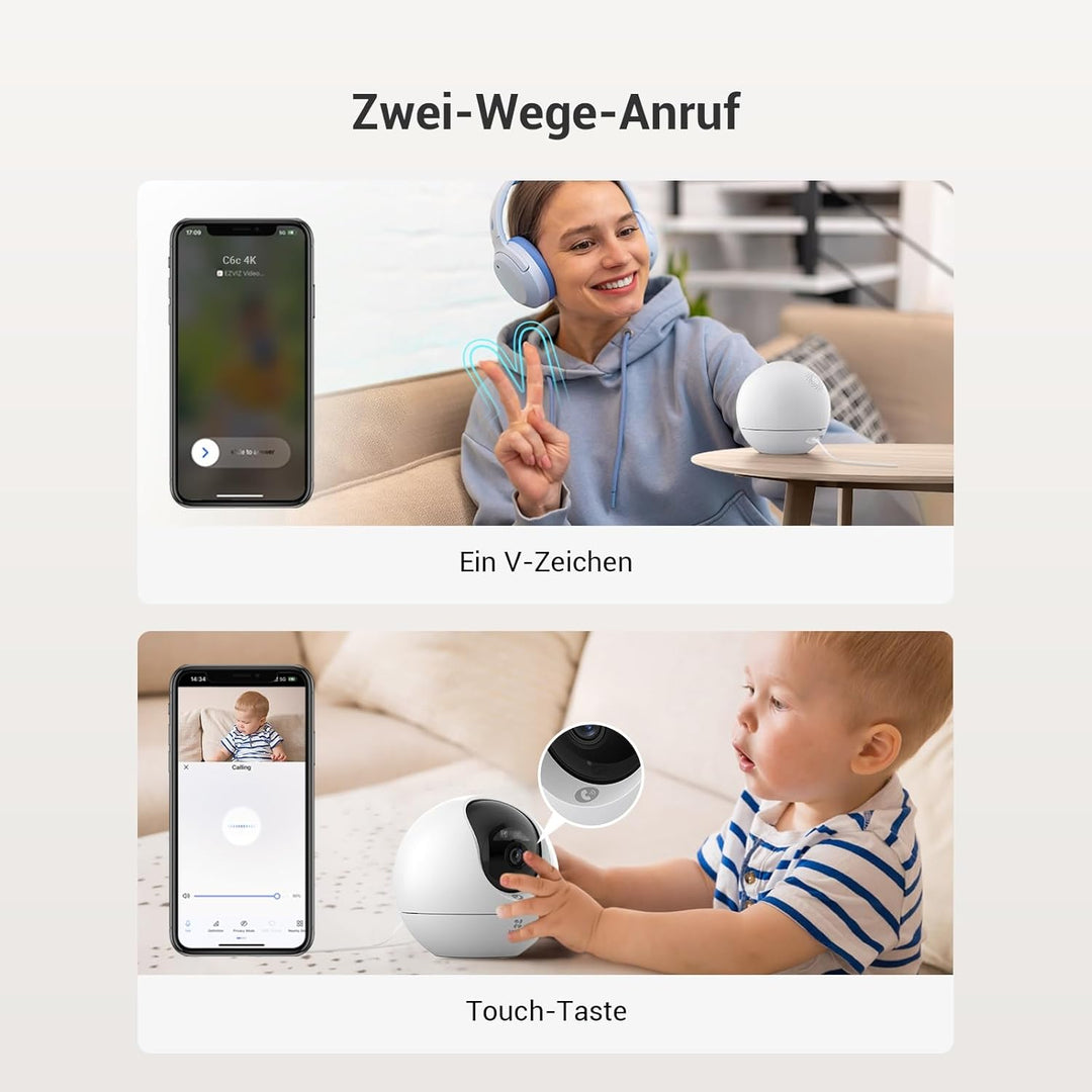 - Fortschrittliche 4K Auflösung, 360°Abdeckung: Diese alexa Kamera sieht alles lebendig in kristallklarer 4K-Auflösung und bringt jedes Detail zur Geltung. Mit der sich horizontal um 340° und vertikal um 130° drehbare Linse kann diese IP Kamera Ihr
