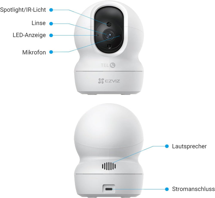 - Unterstützt 512GB MicroSD-Karte & EZVIZ CloudPlay:Sie können Videos auf eine SD-Karte bis zu 512GB (nicht im Lieferumfang enthalten) oder auf EZVIZ Cloud aufnehmen, um sicherzustellen, dass Sie Videos jederzeit abspielen können