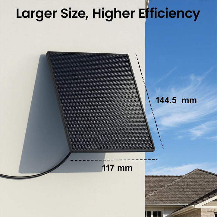 - Kontinuierliche Stromversorgung: Durch die Verwendung von monokristallinem Silizium mit superstarker Absorption von Sonnenenergie kann Ihre Akku Kamera kontinuierlich aufgeladen werden und arbeiten, ohne das Solarpanel zum manuellen Aufladen von der Wand