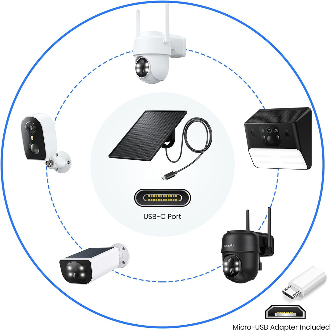 - Kompatibel mit Typ-C Akku Kameras: Galayou Solarpanel wird mit einem Typ-C-Kabel mitgeliefert ,und ist kompatibel mit Typ-C kabellosen batteriebetriebenen Überwachungskameras für Aussen