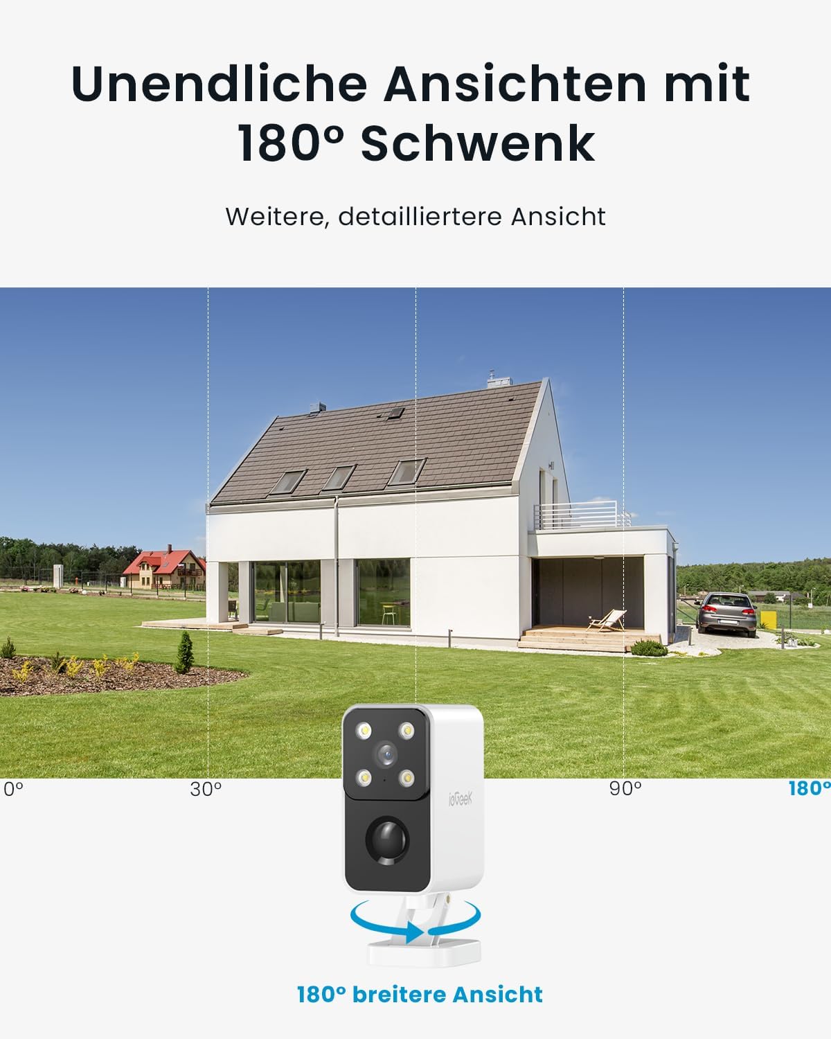 - 【180° Schwenke & 5200mAh Akku】Die neu verbesserte überwachungskamera aussen akku von iegeek S3 kann horizontal um 180°gedreht werden, ohne Winkelbegrenzung, sodass Sie einen ultraweiten Betrachtungswinkel geniessen können. Die überwachungskamera