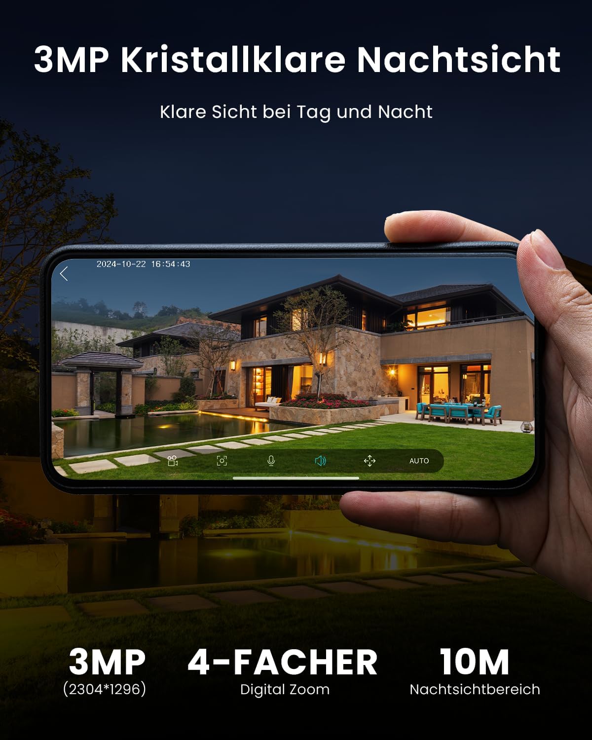 - 【2K 3MP HD Pixel & Farbnachtsicht】2K 3MP hochauflösende Pixel (2304 x 1296), schnelle Bildgebung, liefern Ihnen klare und helle bilder.Die wlan kamera outdoor akku ist mit 4 hellen Lichtperlen ausgestattet, die die Farbe des Bildes sofort