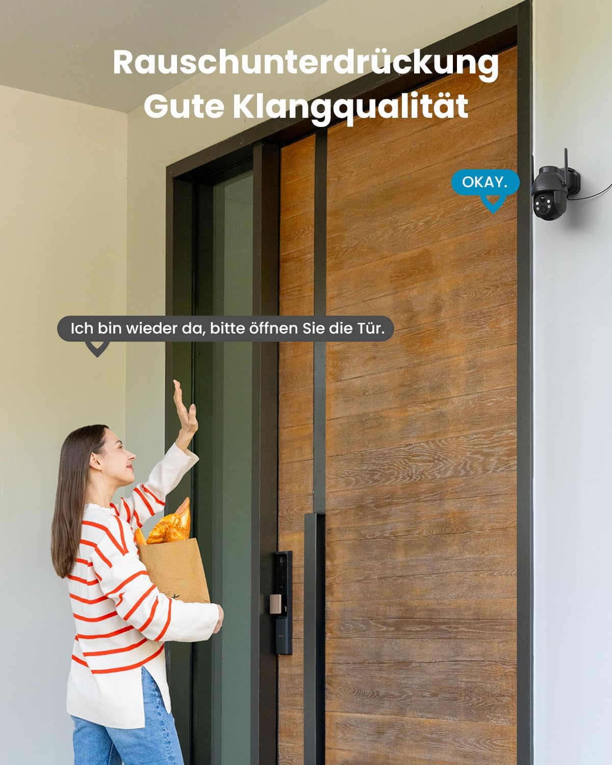 - 💖【Zwei-Wege-Audio & Kompatibel mit 𝐀𝐥𝐞𝐱𝐚】🔊ieGeek kamera überwachung aussen hat ein eingebautes Mikrofon und Lautsprecher, unterstützen Sprachanrufe durch APP oder geben Befehle an Alexa für die Echtzeit-Überwachung. Die ip