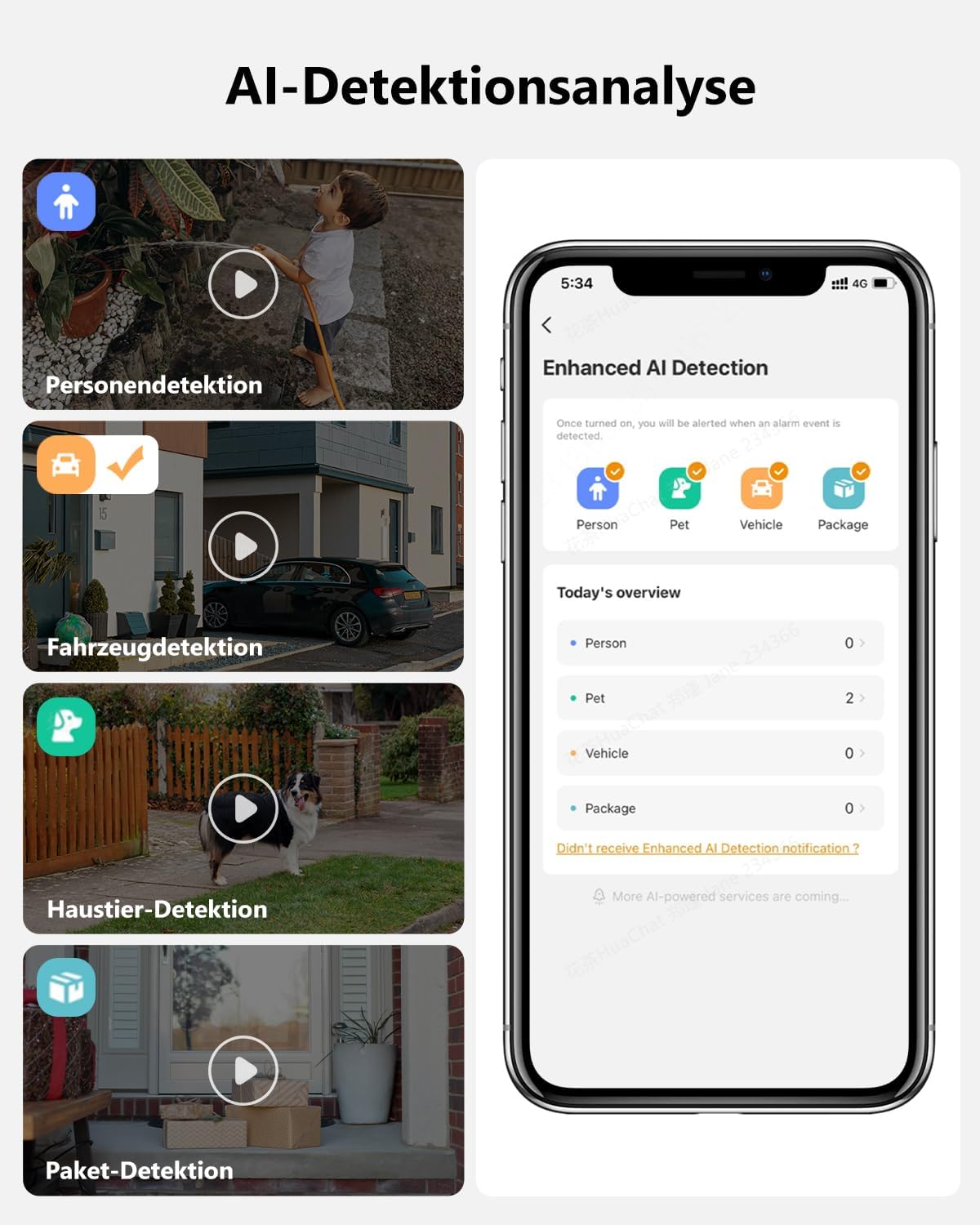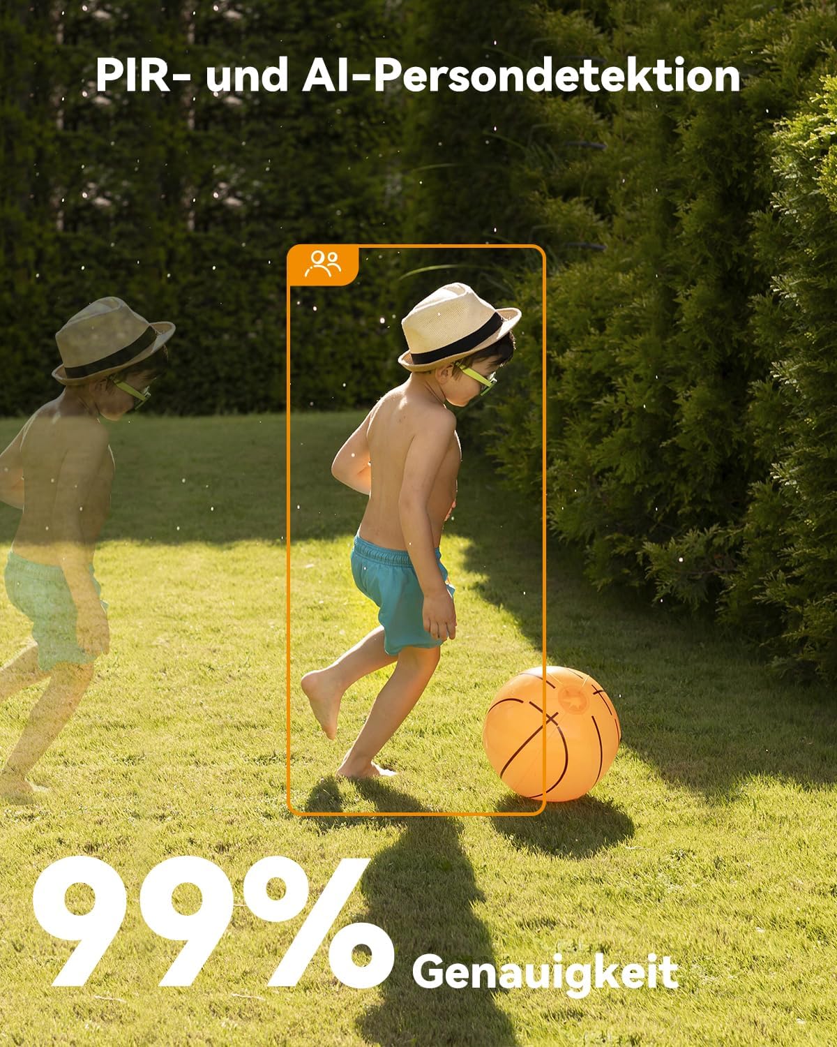 - 【PIR+KI Personenerkennung & Sirene】WLAN Kamera Outdoor Akku über einen eingebauten PIR und KI-Personenerkennung, die den menschlichen Körper anhand der Temperatur identifizieren können, reduziert Fehlalarme durch Regentropfen/Lichter/Insekten um