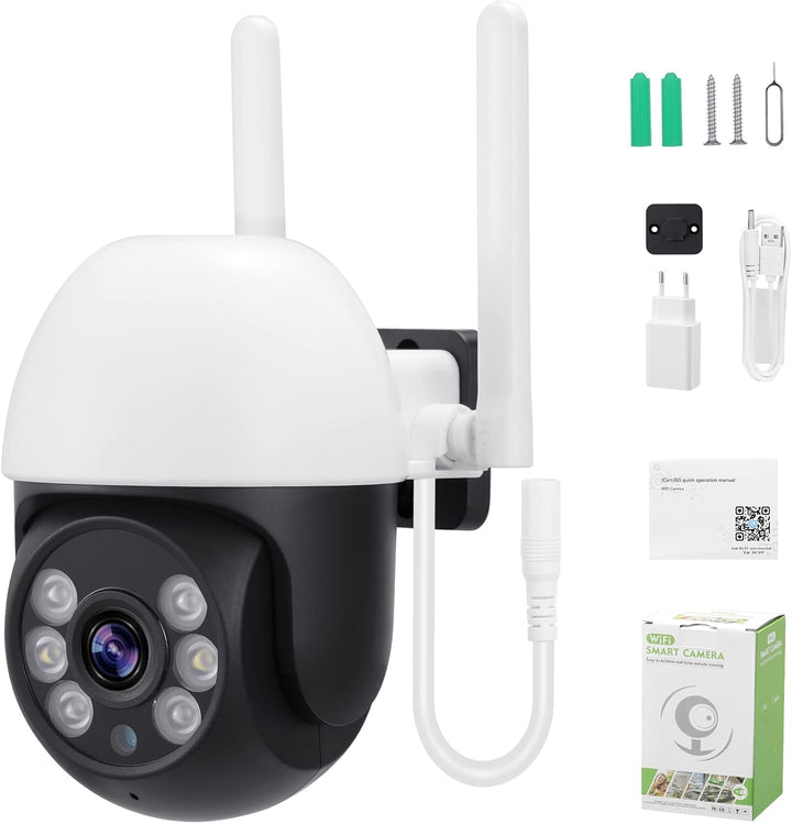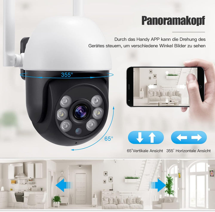 - 【Auto-Tracking und Zwei-Wege-Audio】Diese Überwachungskamera Aussen wlan im Freien hat die Funktion der automatischen Verfolgung der menschlichen Bewegung, informieren Sie über die mehr Aktivitäten der Menschen unter Überwachungskamera und bietet