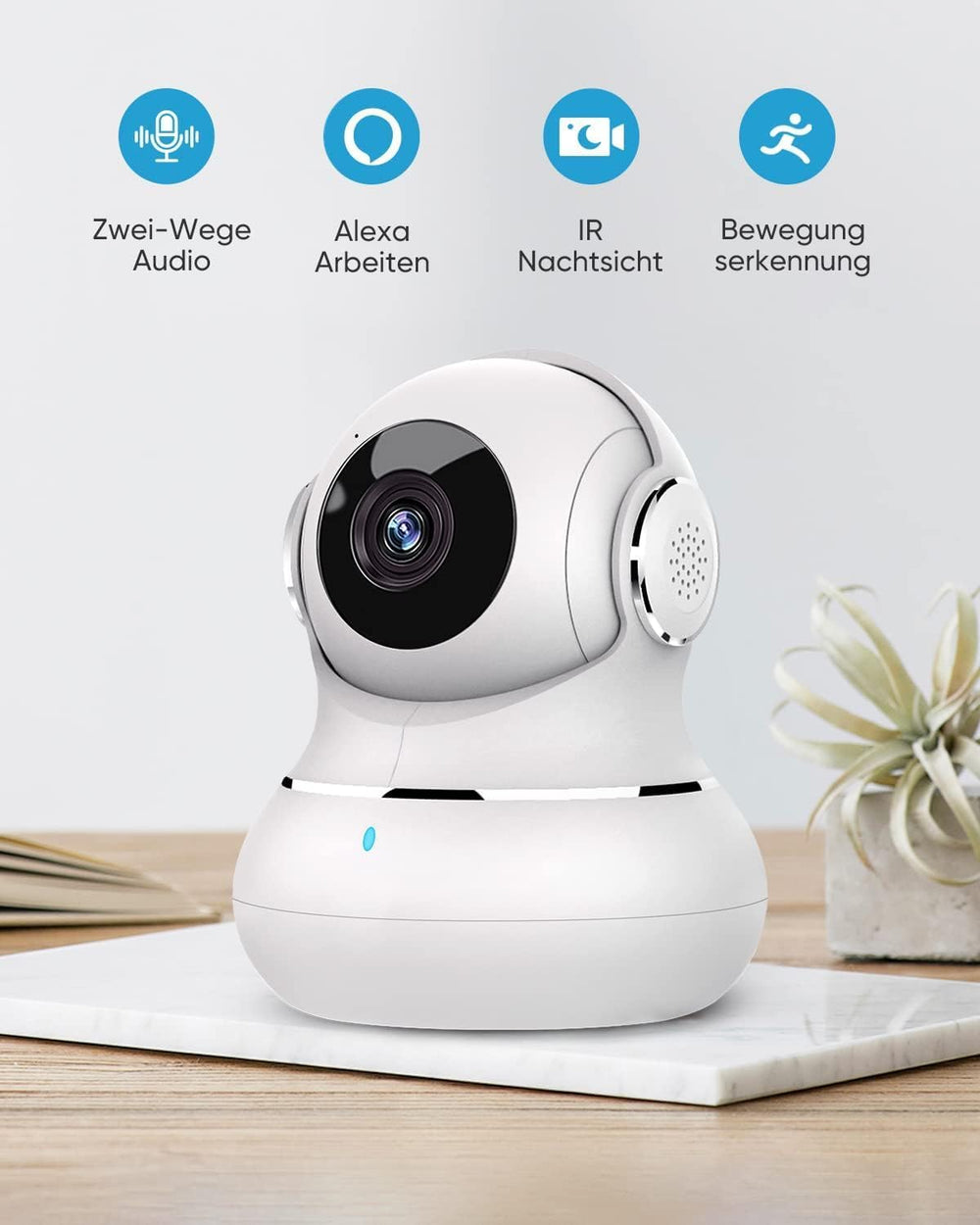 - 【Funktioniert mit Alexa und ist einfach zu bedienen】Die 360 Grad Kamera ist mit einem 2,4 GHz WLAN Netzwerk kompatibel (unterstützt 5 GHz nicht) und gewährleistet so ein starkes Signal für eine zuverlässige Netzwerkleistung. Funktioniert mit