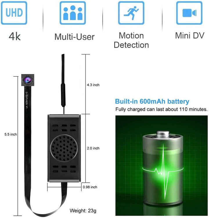 - 【Minikamera mit Bewegungsmelder】Die Mini-Sicherheitskamera verfügt über einen integrierten Bewegungssensor, der mit der Aufnahme beginnt, sobald eine Bewegung erkannt wird. Machen Sie sich keine Sorgen, dass Sie wunderbare Momente verlieren