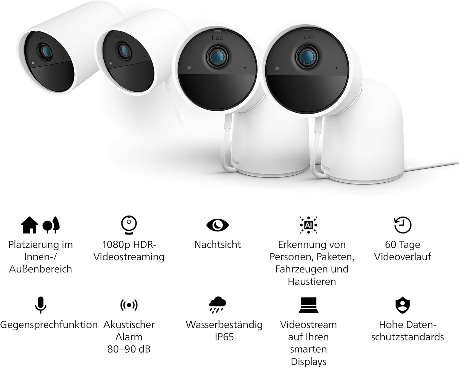 - Philips Hue behält Ihr Zuhause im Auge, sodass Sie beruhigt gehen können, wohin Sie wollen. Mit klaren Livestream- und Aufzeichnungsfunktionen wissen Sie immer, was innerhalb und ausserhalb Ihres Hauses passiert. Die schwarze kabelgebundene Hue Secure