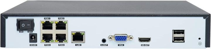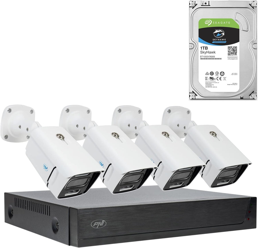 - Das Überwachungssystem PNI House IPMAX POE 3 unterstützt den Anschluss von 4 POE-Kameras (über direkte Verbindung zu den 4 POE-Ports am NVR) oder 9 POE-Kameras (über einen POE-Switch) bis zu 8MP (4K) oder die Netzwerkverbindung von 9 Kameras mit
