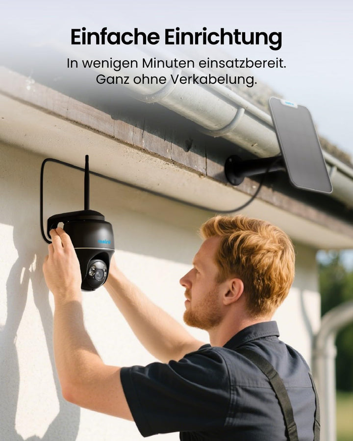 - 100% KABELLOS UND SOLARBETRIEBEN: Dank der einfachen Installation ohne kompliziertes Werkzeug und dem kabellosen Design kann diese schwarze Solar-Kamera überall eingesetzt werden. Zur Non-Stop-Stromversorgung können Sie sie einfach mit dem mitgelieferten Reolink Solarpanel verbinden.