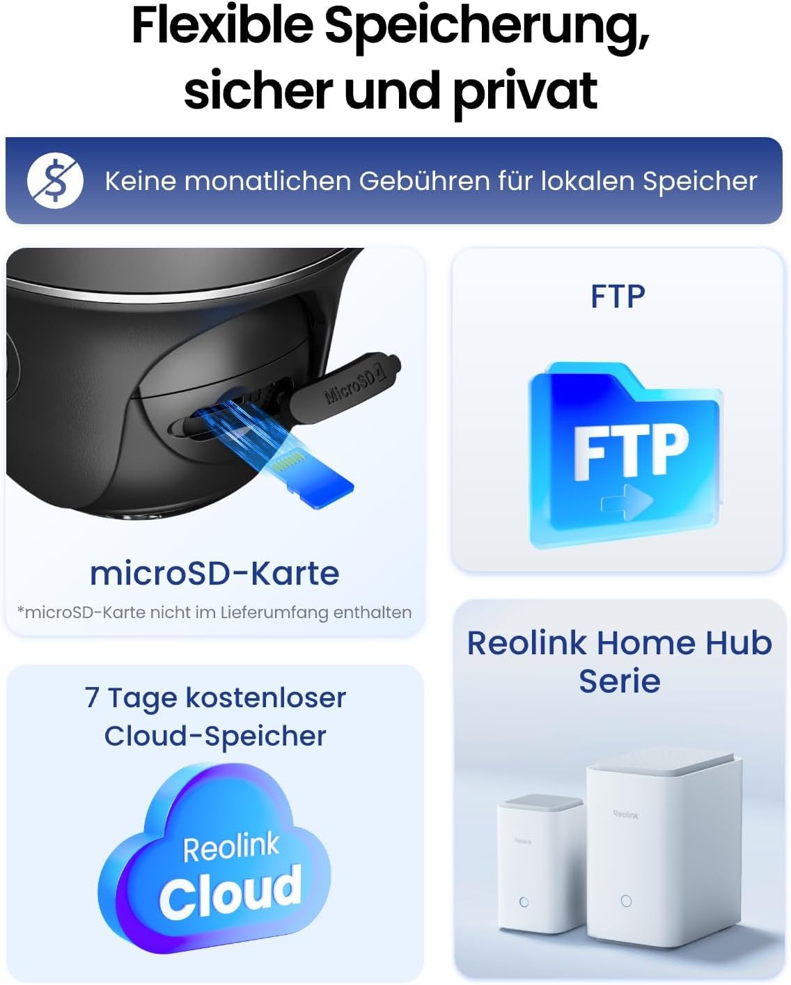 - FERNZUGRIFF UND ZWEI-WEGE-AUDIO: Sie können Ihr Zuhause oder Geschäft überall live sehen, hören, mit Ihren Kindern, Mitarbeitern oder Zustellern interaktiv sprechen. Bewegungsvideos werden auf einer Micro-SD-Karte(bis zu 128GB, separat erhältlich) gespeichert und können direkt über die Reolink-Software (App/Client) abgespielt werden. OHNE Abo-Gebühr.