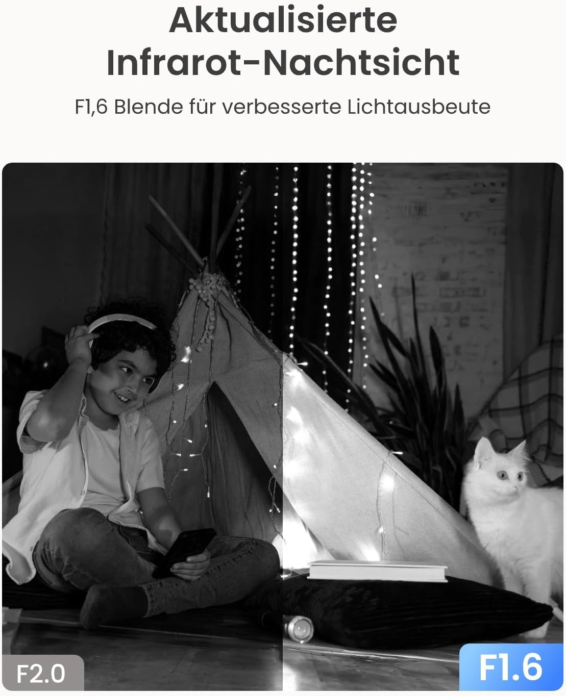 - 4MP SUPER HD & STARKE NACHTSICHT: Die Überwachungskamera nimmt kristallklare Videos mit einer Auflösung von 2560x1440 (4 Megapixel) auf, klarer als 1080p. Die Infrarot-LEDs bieten Ihnen eine hervorragende Nachtsicht bis zu 40ft, so dass Sie Ihr Baby oder Haustier bei schwachem Licht deutlich sehen können