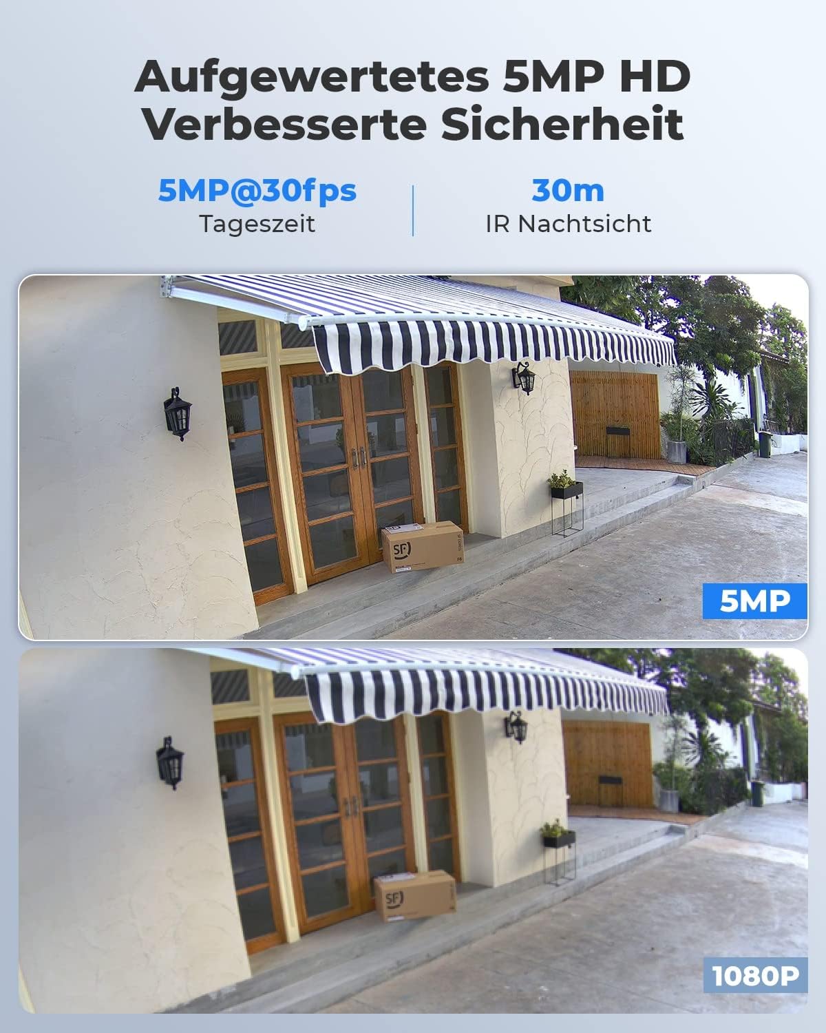 - 5MP Super HD und Audioaufzeichnung: Mit einer hohen Auflösung von 2560x1920(5MP) kann die Überwachungskamera RLC-510A kristallklares Video mit feinen Details aufnehmen. Mit dem eingebauten Mikrofon nimmt es auch das Audio auf, um zusätzliche