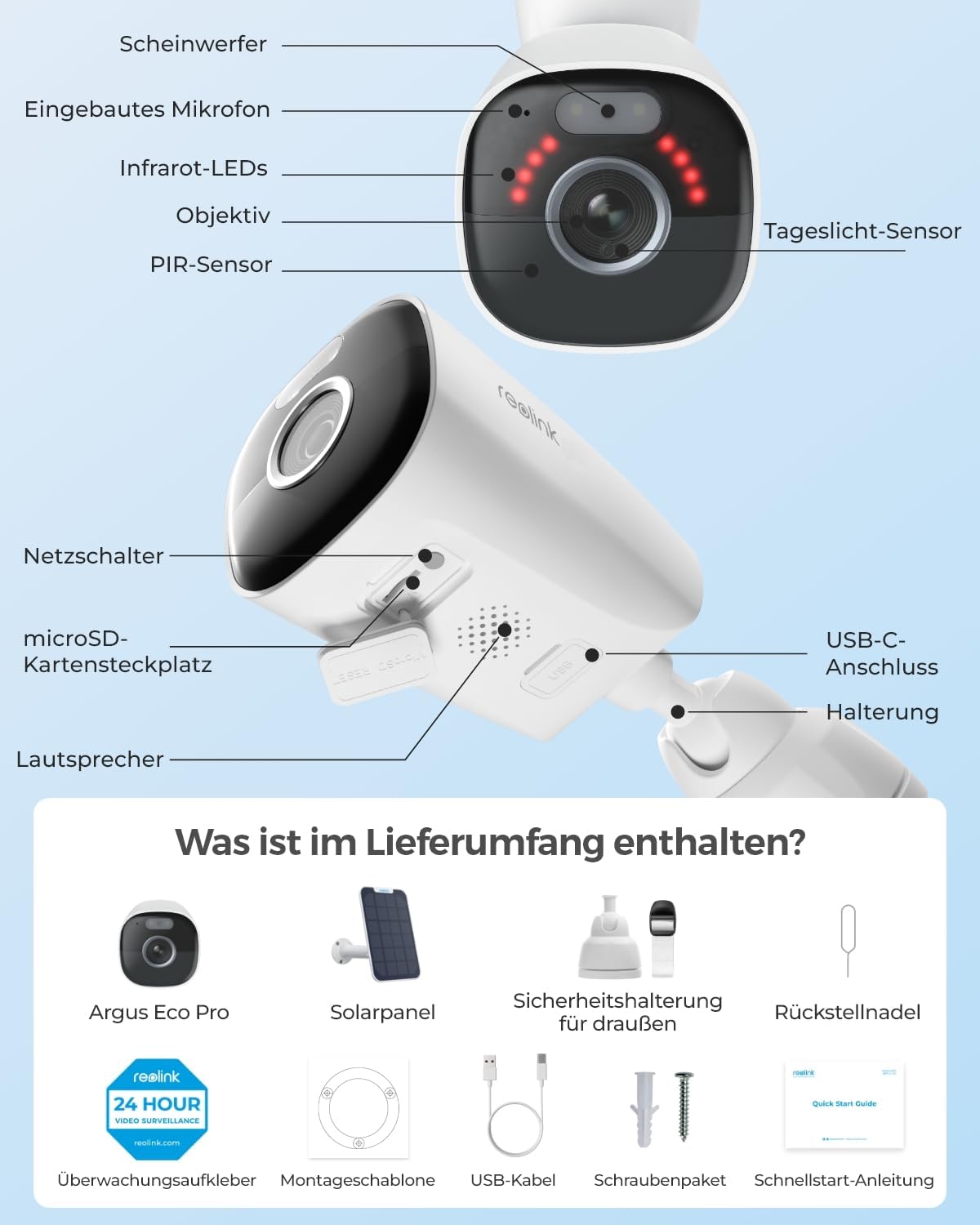 - MEHRERE ALARME & SOFORTIGE AUFZEICHNUNG: Beim Erkennen einer Bewegung erhalten Sie App-Push oder E-Mails, während Spotlights & die Sirene vor Eindringlingen warnen. Alle Bewegungen werden auf der microSD-Karte (separat erhältlich) oder in der Reolink