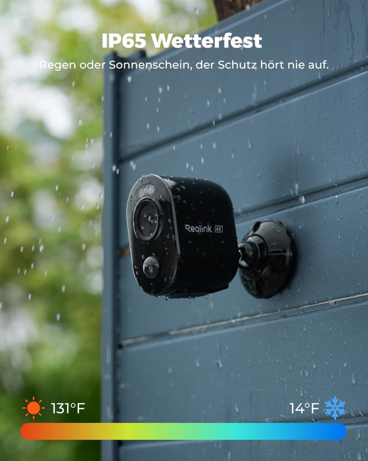 - Kabellos & Solarbetrieben: Montieren Sie ihn draussen, wo keine Kabel verlegt werden können. Mit dem mitgelieferten, mehrfachen Montagezubehör und der IP65-Zertifizierung ist eine problemlose Verwendung im Aussenbereich möglich.