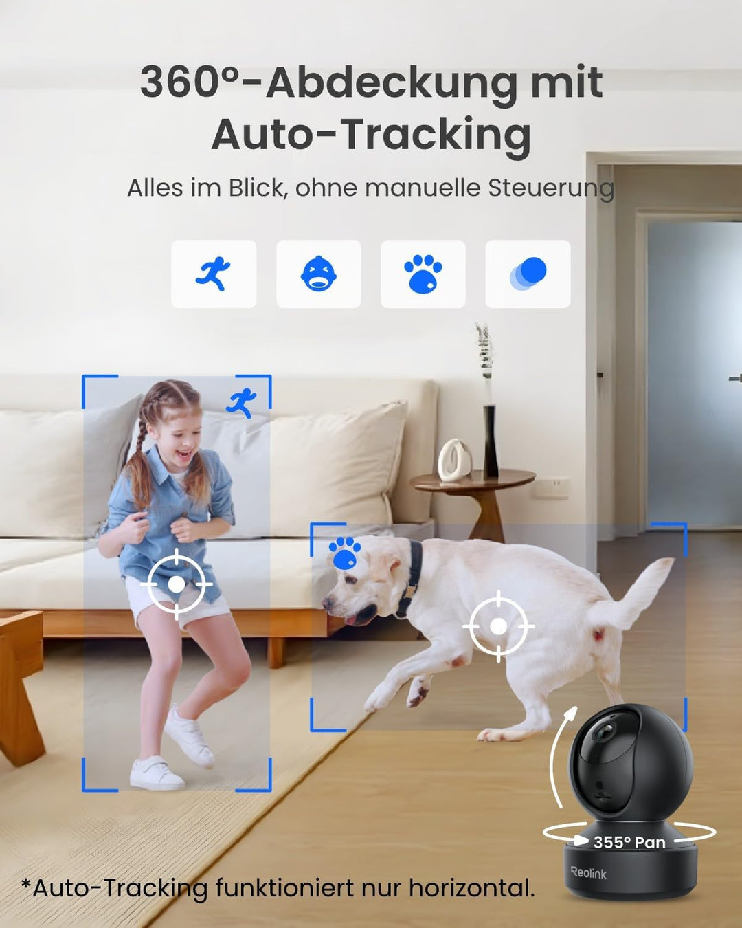 - Rundumsicht mit Pan & Tilt: Der Weitwinkel mit 355° Pan und 50° Tilt kann Ihr Zuhause gut schützen. Sie können den Betrachtungswinkel einfach steuern, um jeden Teil Ihres Hauses zu sehen. Und das Stromkabel ist ca. 3 m lang, um Ihren Bedarf zu decken