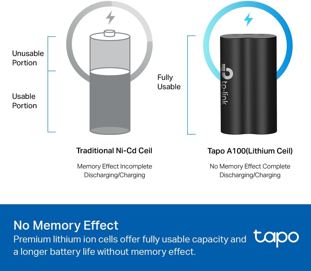 - Grosse Kapazität von 6700 mAh – verlängert die Nutzungsdauer (bis zu 180 Tage) Ihrer batteriebetriebenen Kameras und Video-Türklingeln von Tapo
