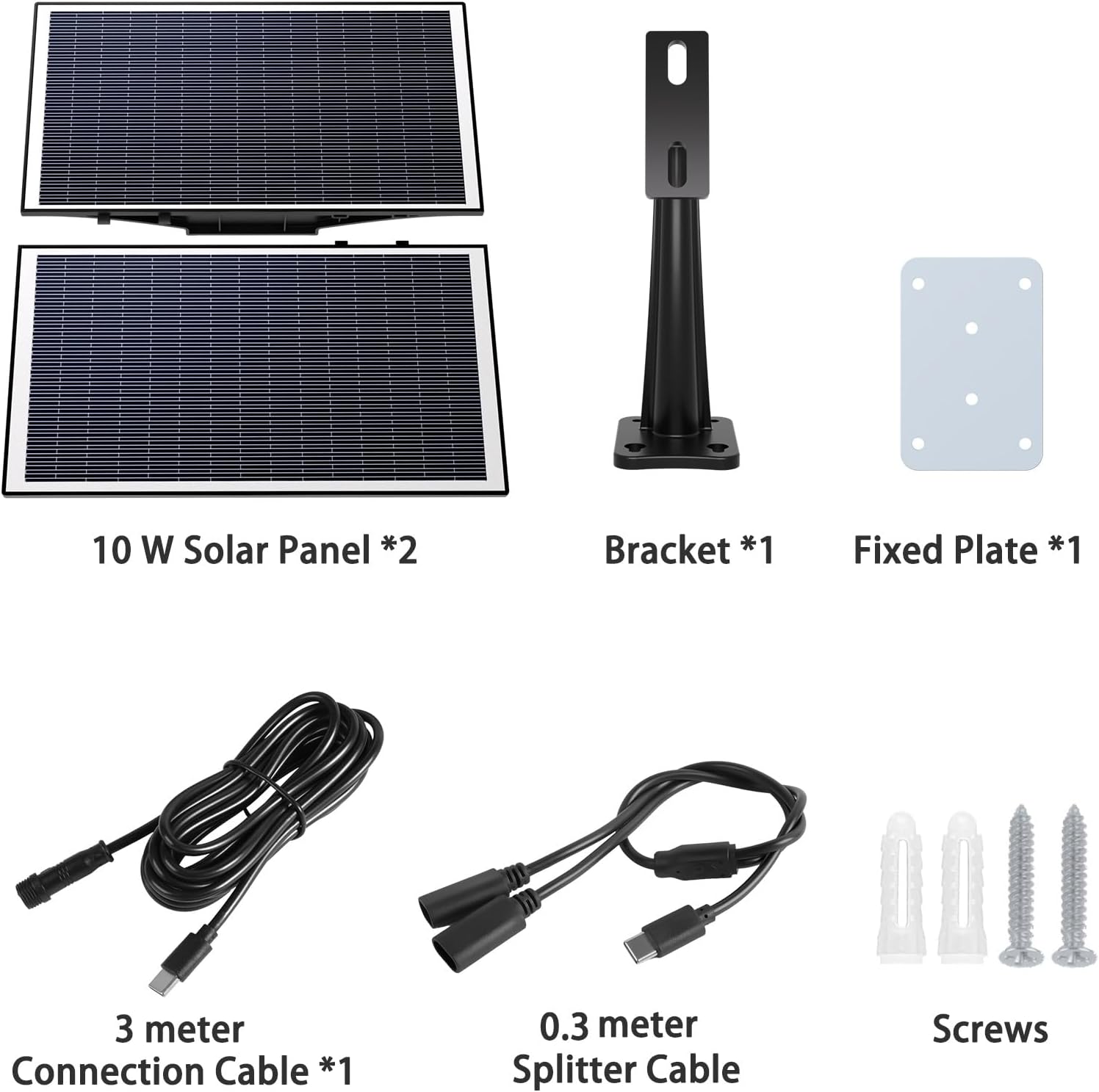 - Effiziente Solarenergie:Bestehend aus zwei 10W Solarmodulen, die miteinander verbunden sind, insgesamt 20W, kann es eine kontinuierliche Stromversorgung für Ihre Kamera bieten, ohne sich Sorgen über Stromausfälle machen zu müssen oder gezwungen zu