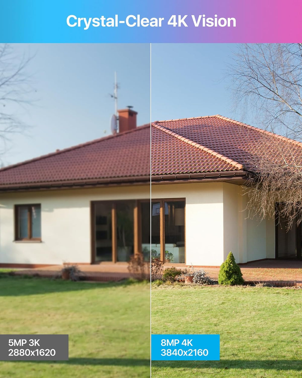 - 【4K Überwachungskamera Set mit Farben Nachtsicht】 Erleben Sie gestochen scharfe Bilder in viermal der Auflösung von 1080P. Dank des Ultra HD 4K CMOS Bildsensors erhalten Sie verbesserte Farbtreue, hohen Kontrast und erstklassige Leistung bei