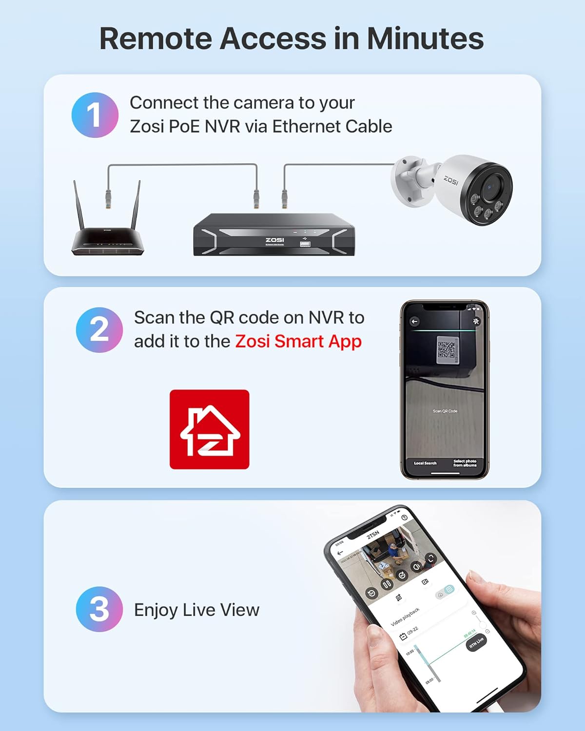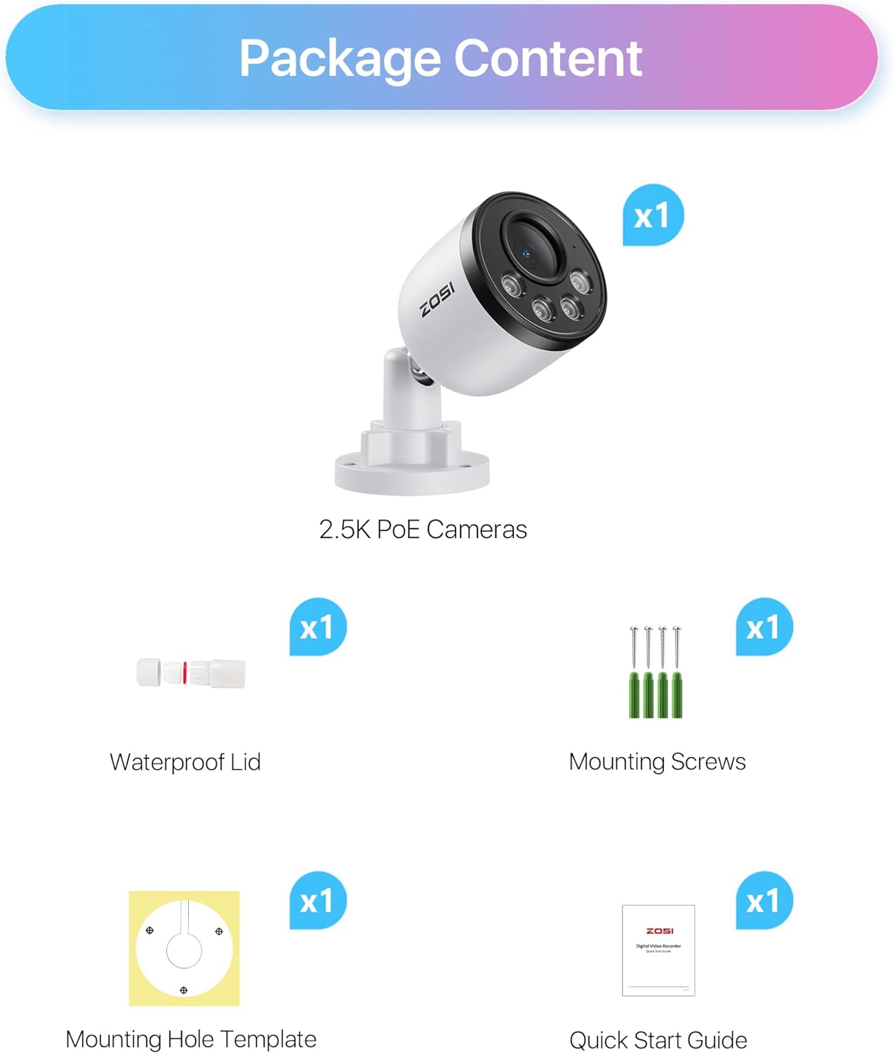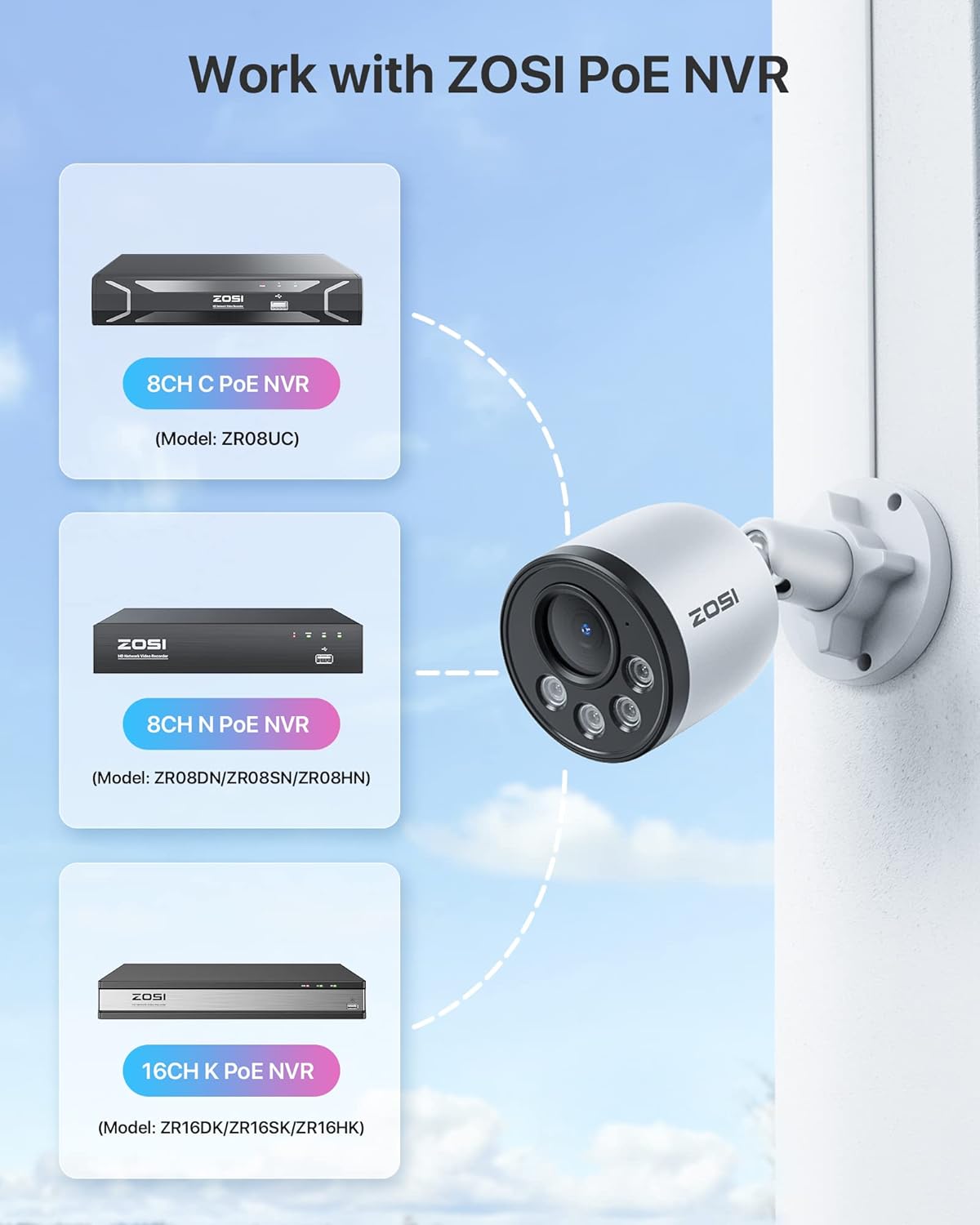 - 1.NUR mit ZOSI NVR kompatibel: Diese Überwachungskamera dient als Ersatzkamera oder Zusatzkamera für ZOSI PoE NVR Überwachungssystem (ZR08UC). Sie kann nicht unabhängig arbeiten oder mit NVR von anderen Marken verbinden. Wenn Sie diese Kamera kaufen