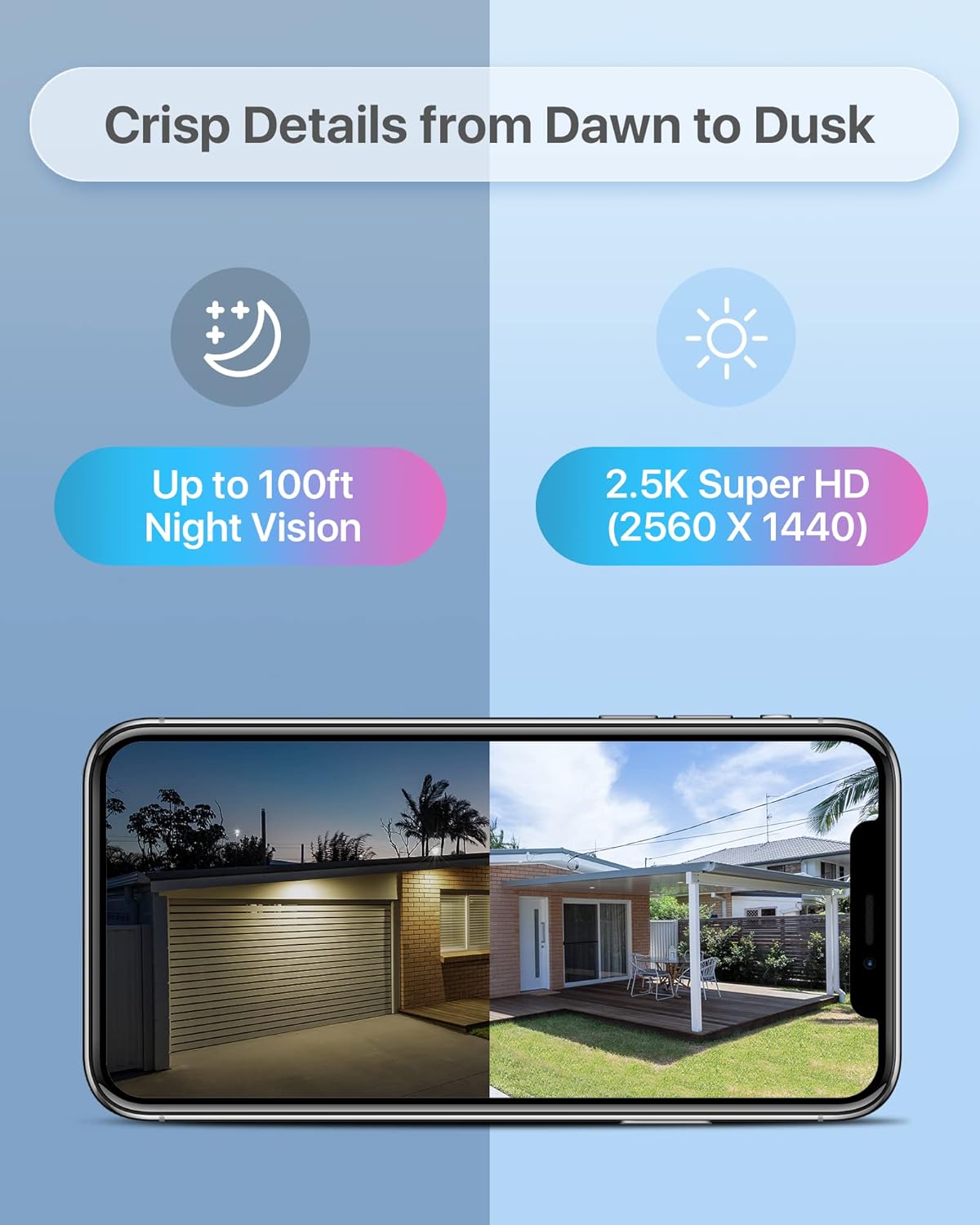 - 2.1440P HD Überwachungskamera: Im Vergleich zu 720P und 1080P Kameras hat diese Sicherheitskamera eine Auflösung von 2560 x 1440, um jedes Detail präzise zu erfassen. Auch an der Nacht können Sie alles klar sehen.