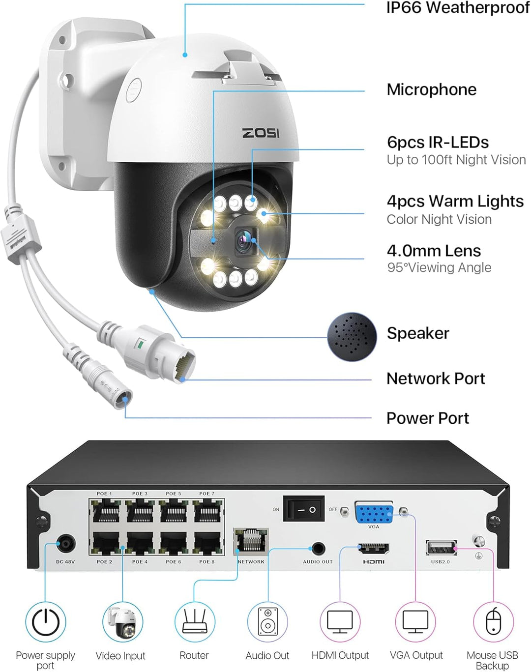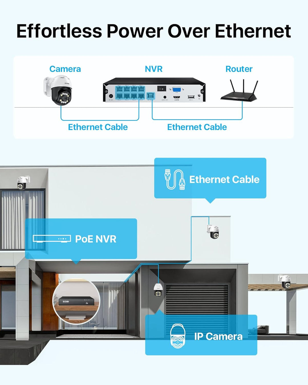 - Plug and Play: Dank nur einem Netzwerkkabel erfolgt die Datenübertragung und Stromversorgung der Kamera Überwachungsset ohne umständliche Kabelverbindungen. Die einfache Verbindung reduziert die Schwierigkeit der manuellen Montage.